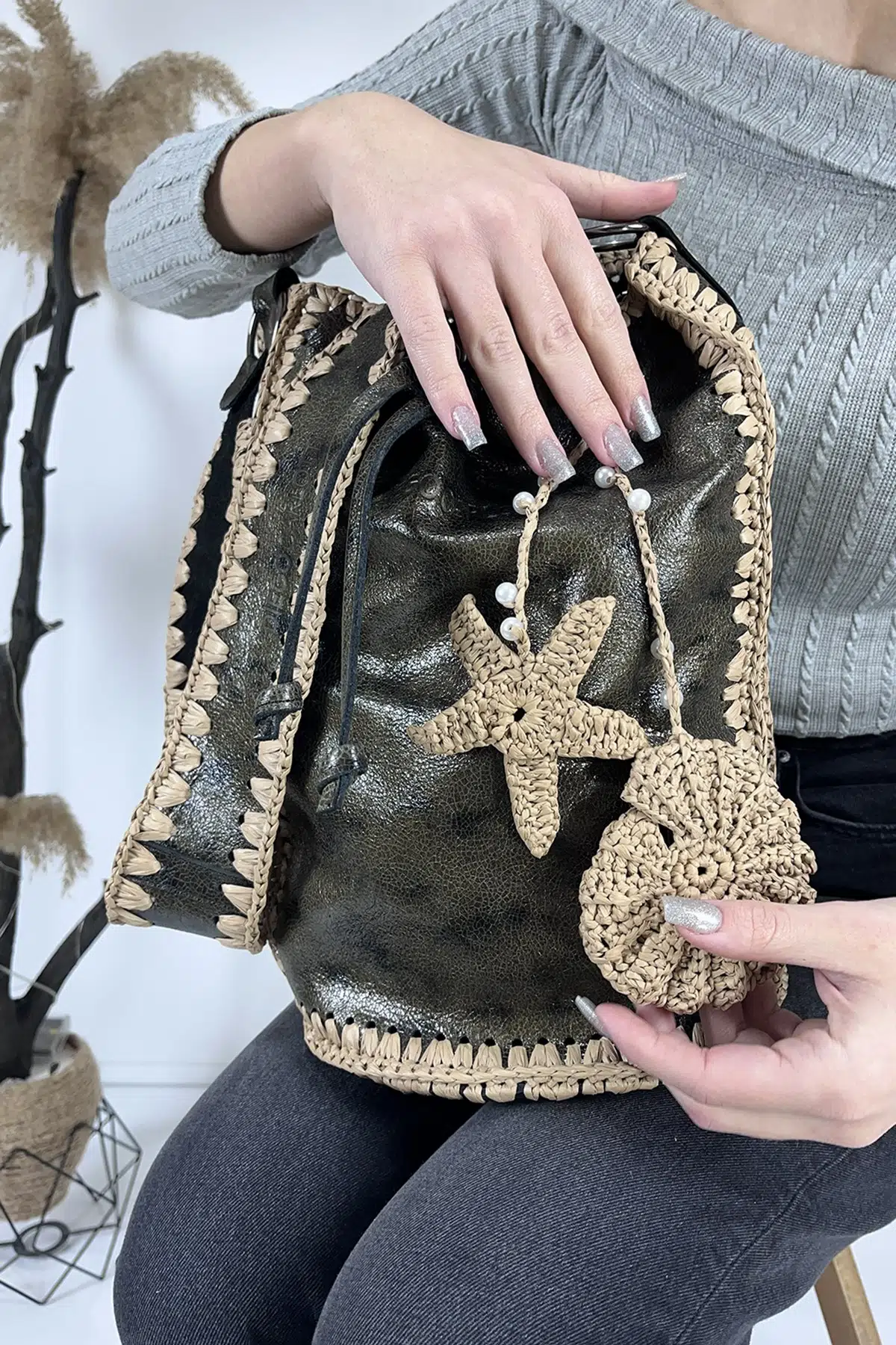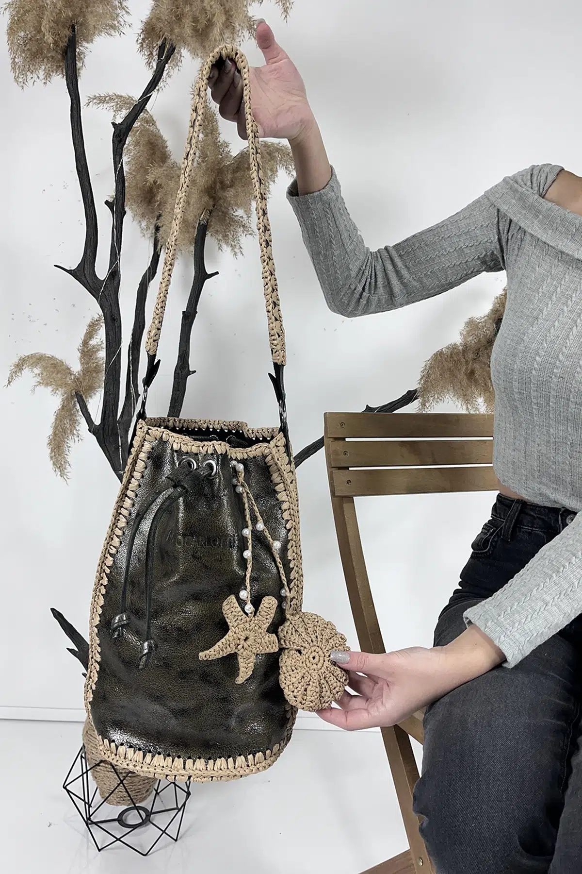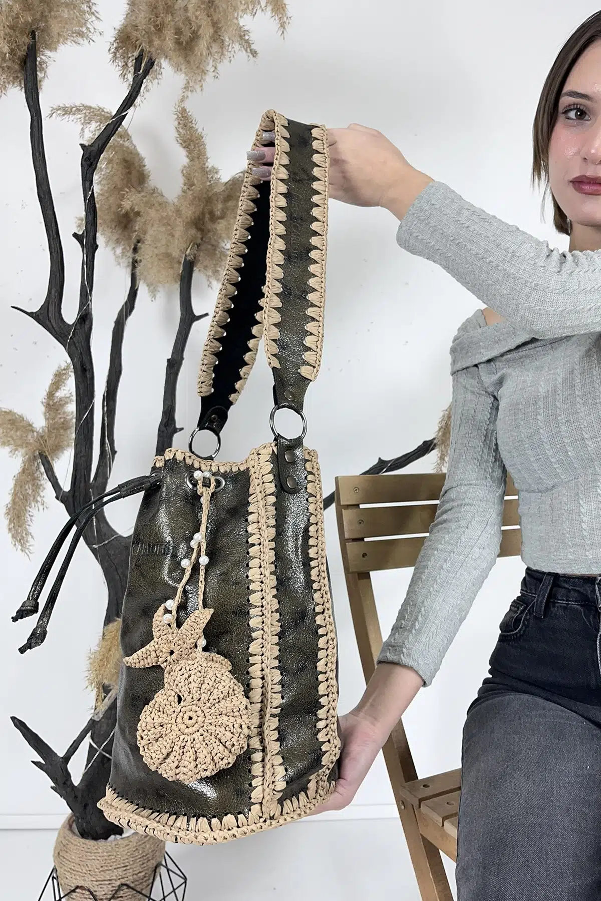 EtiketlerHakiki Deri Kadın El Örgüsü Çanta CT1001