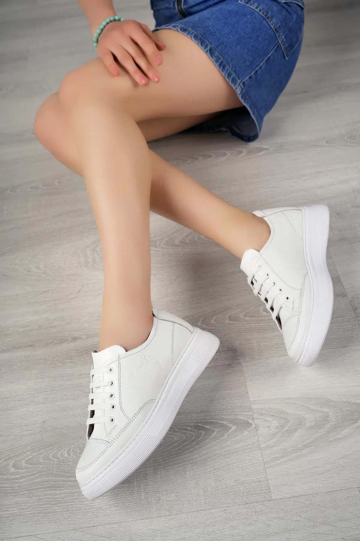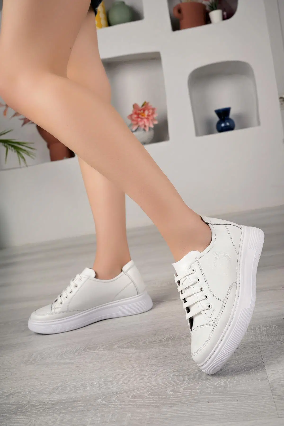Hakiki Deri Kadın Günlük Beyaz Sneaker Ayakkabı DD9107
