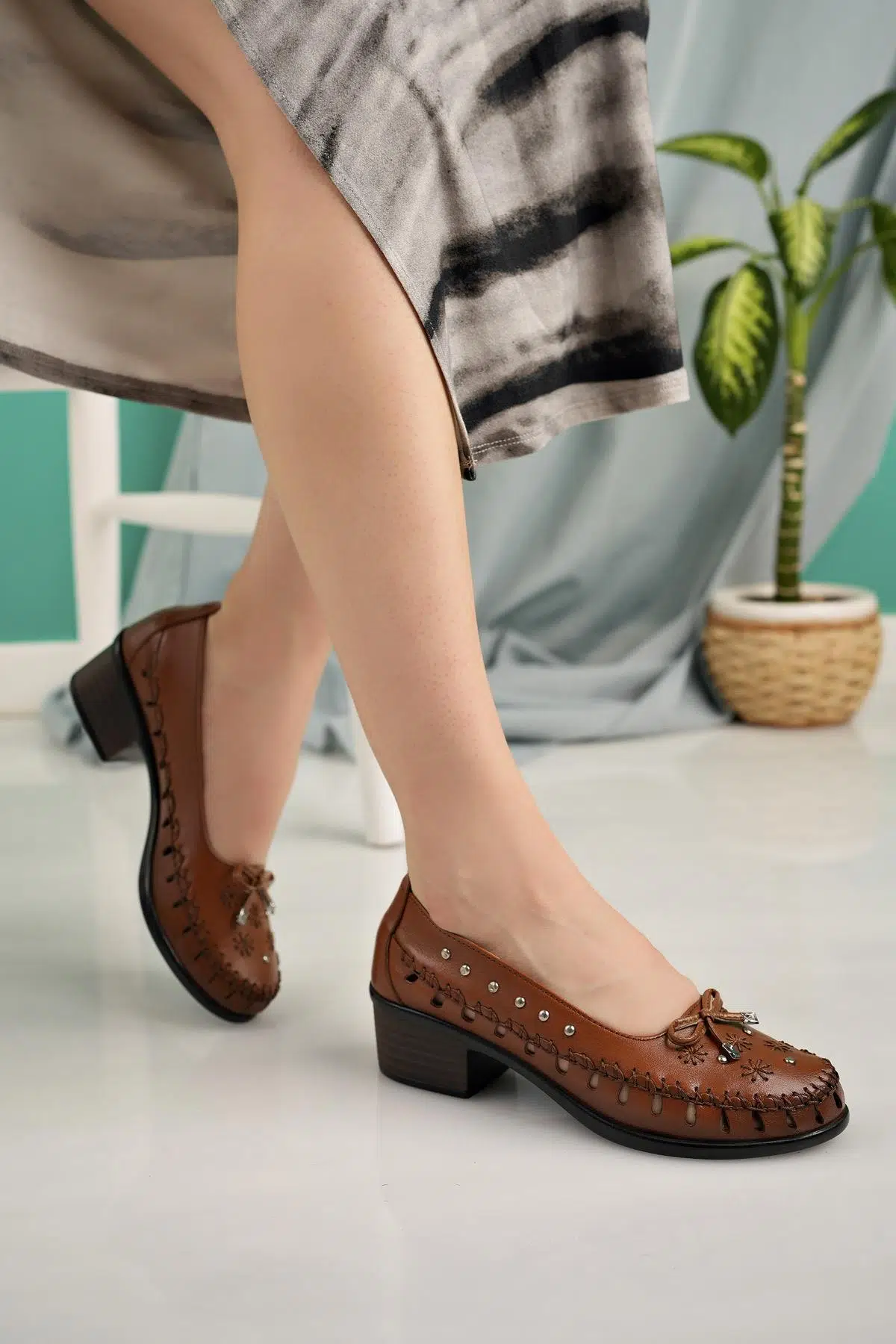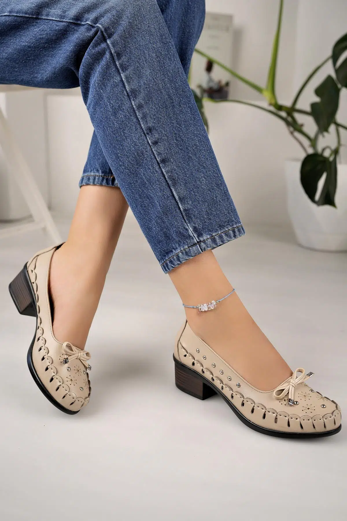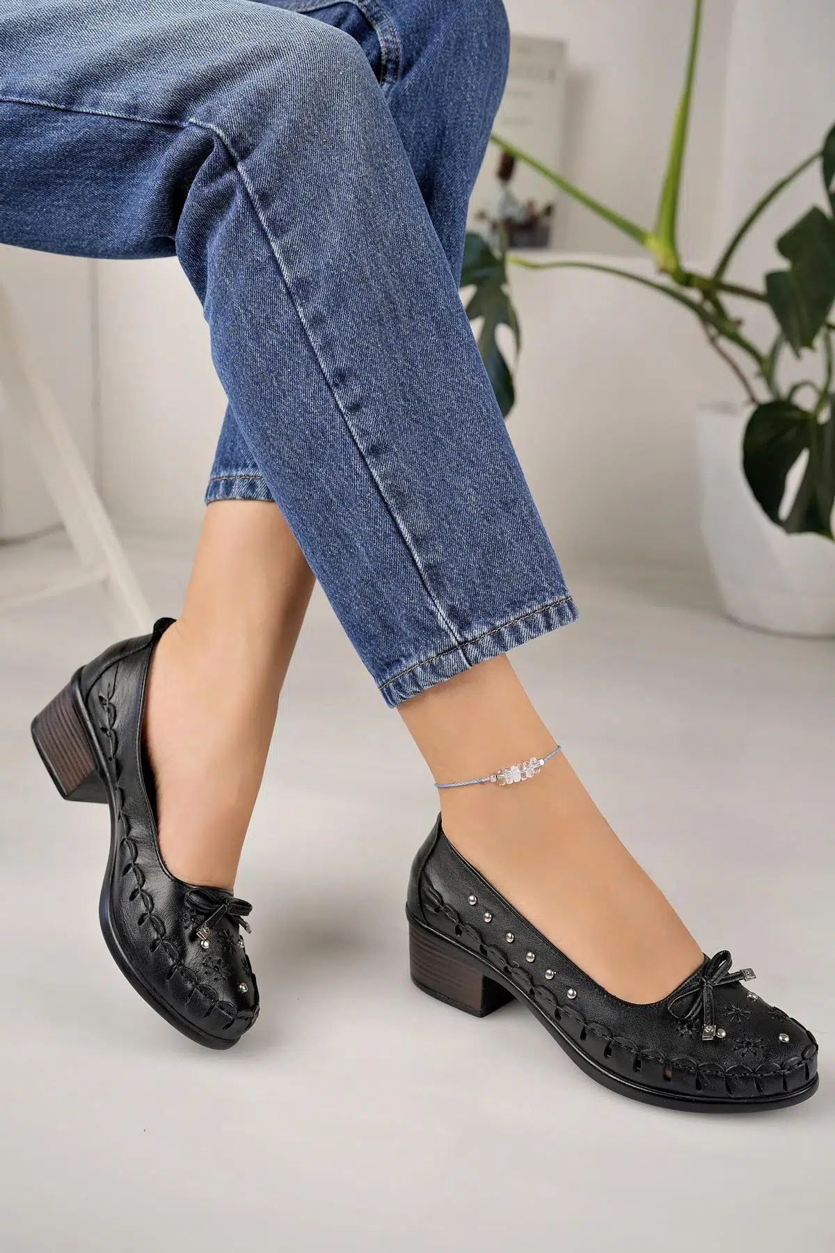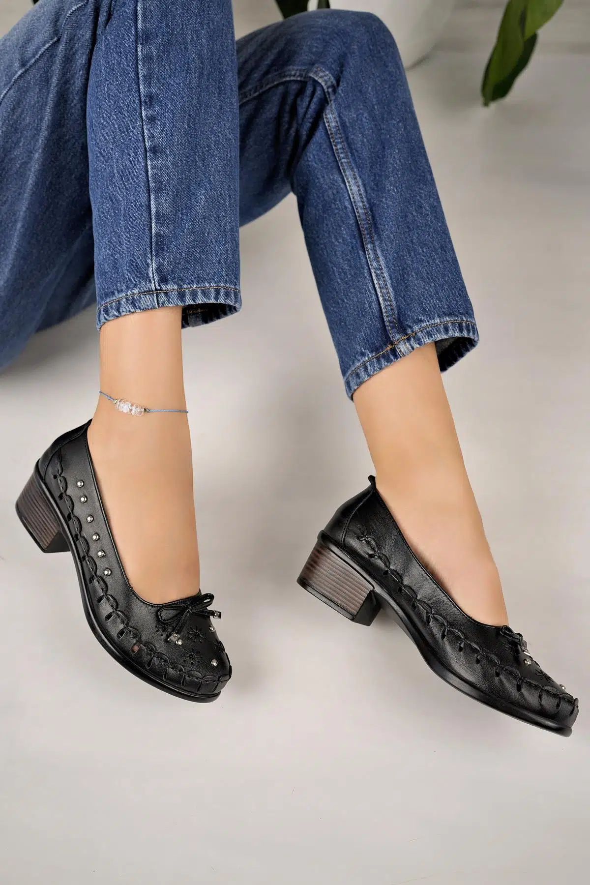 Hakiki Deri Kadın Günlük Klasik Topuklu Ayakkabı DD0187