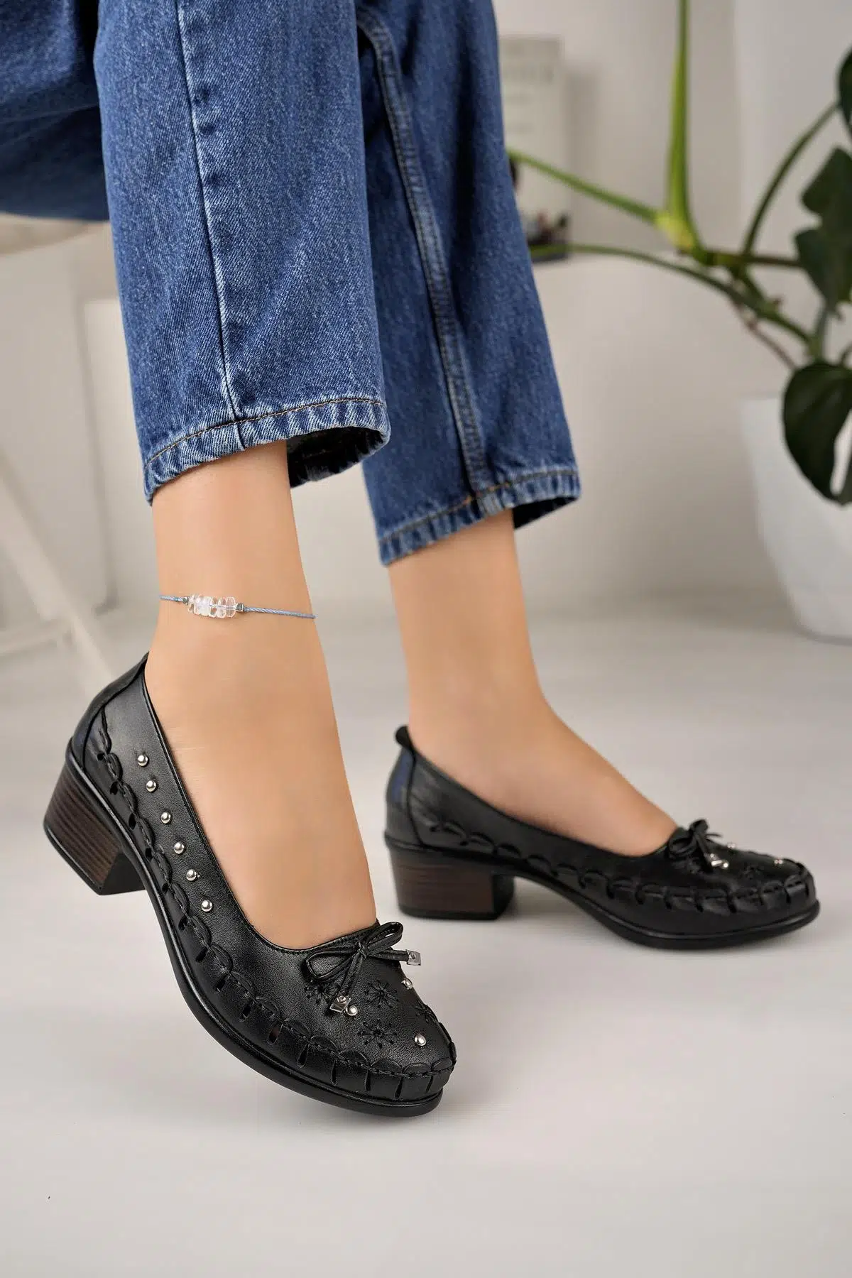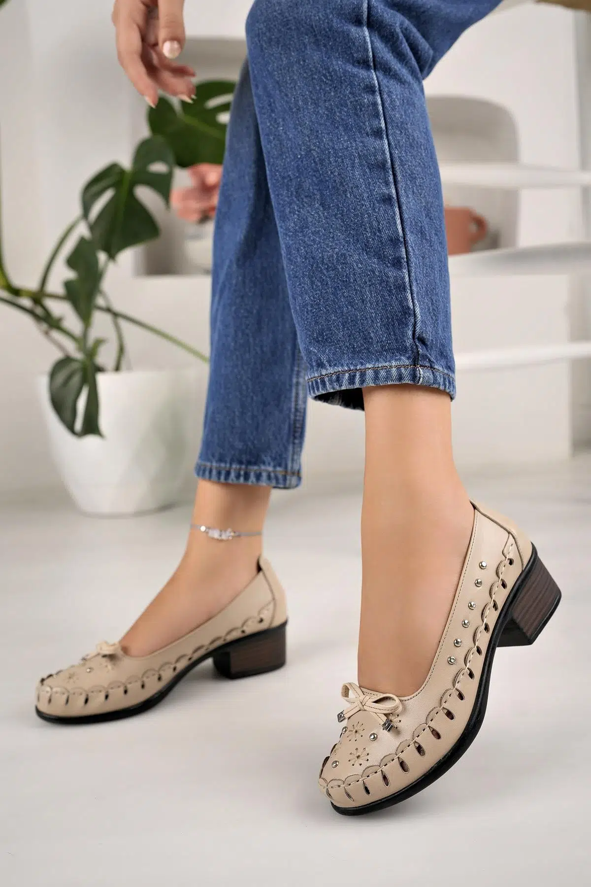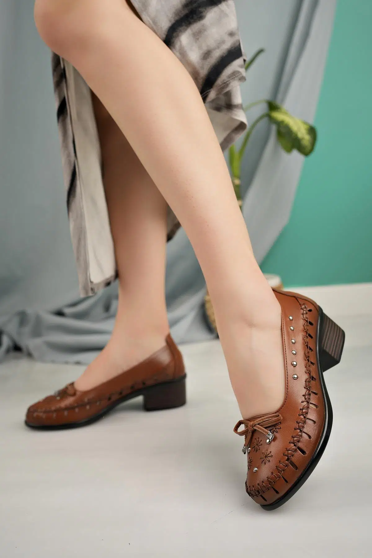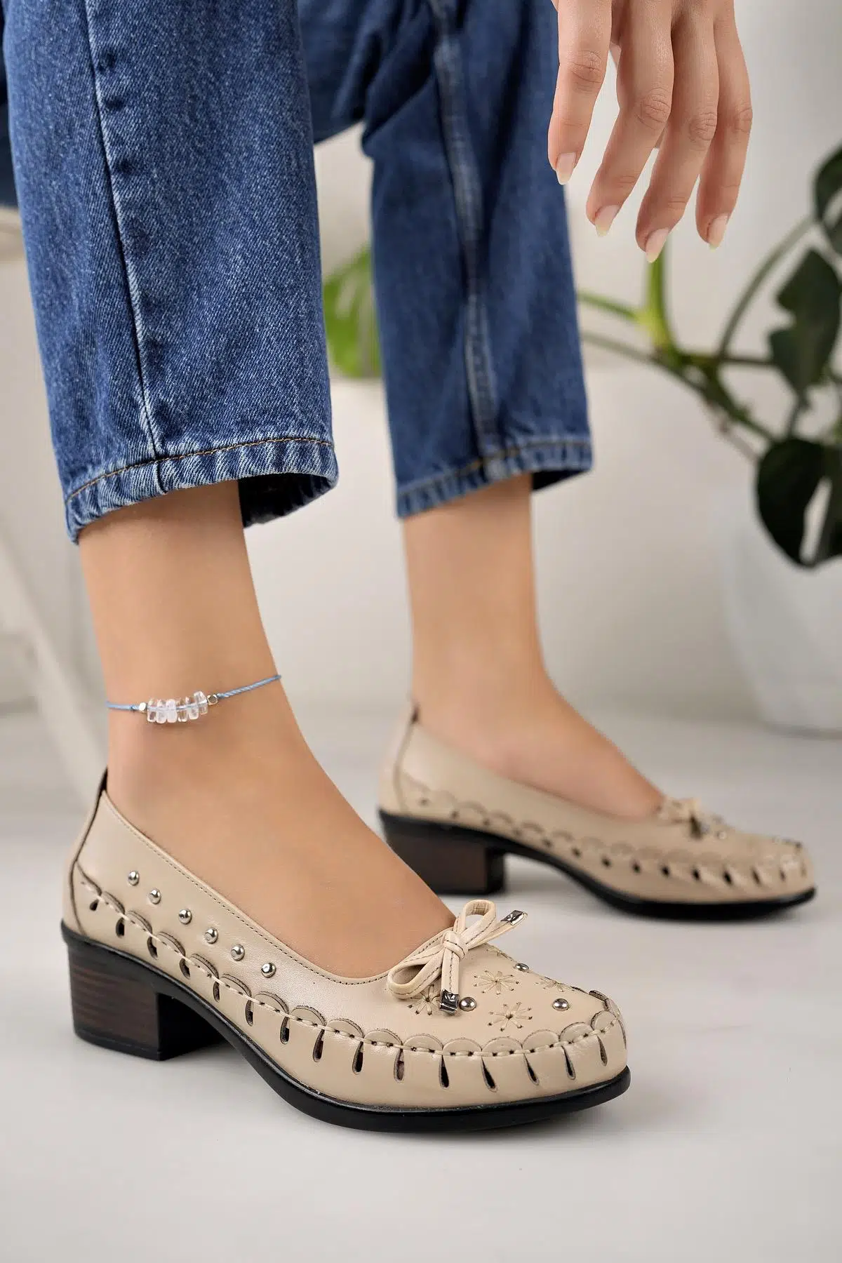 Hakiki Deri Kadın Günlük Klasik Topuklu Ayakkabı DD0187