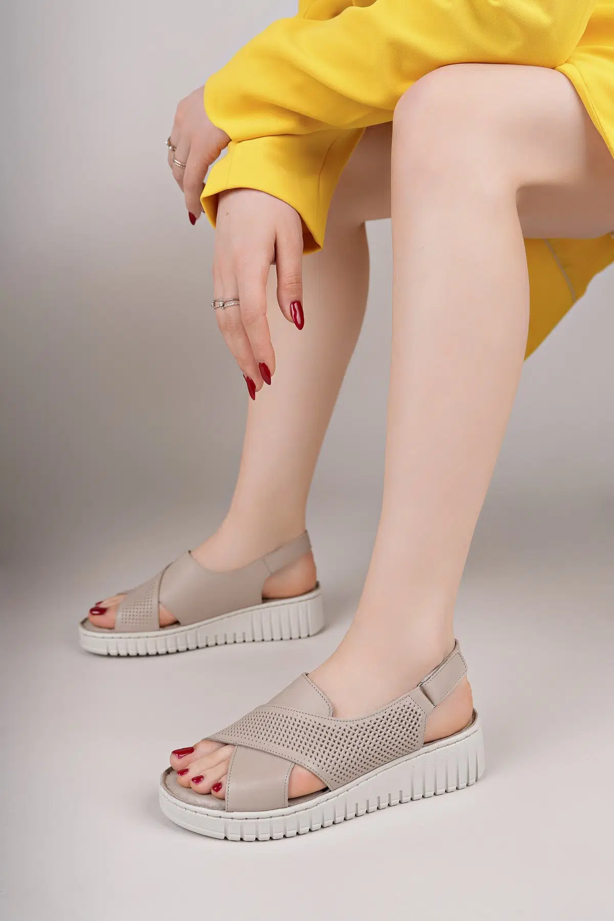 Hakiki Deri Kadın Günlük Rahat Hafif Ortopedik Sandalet DD3008
