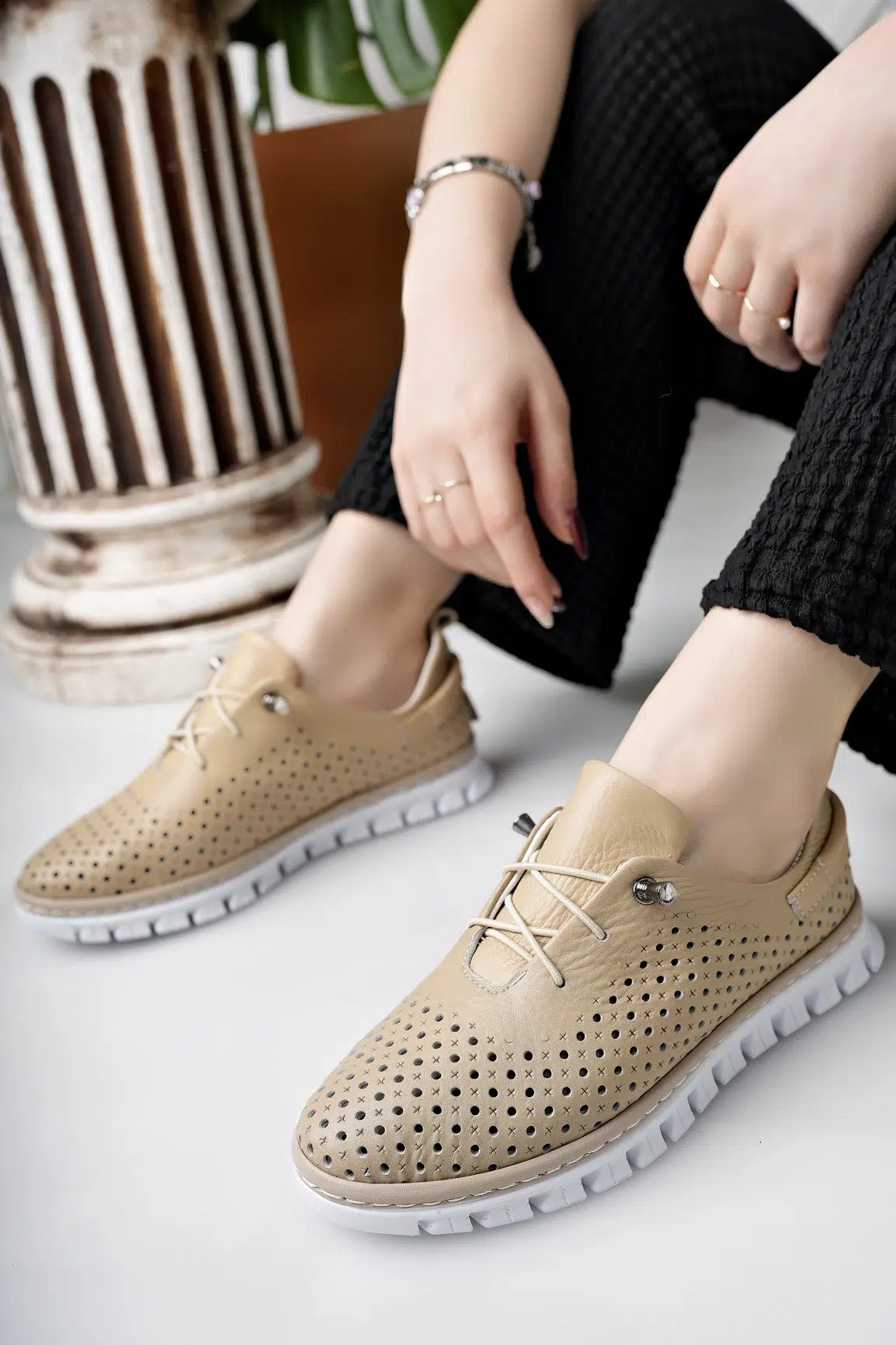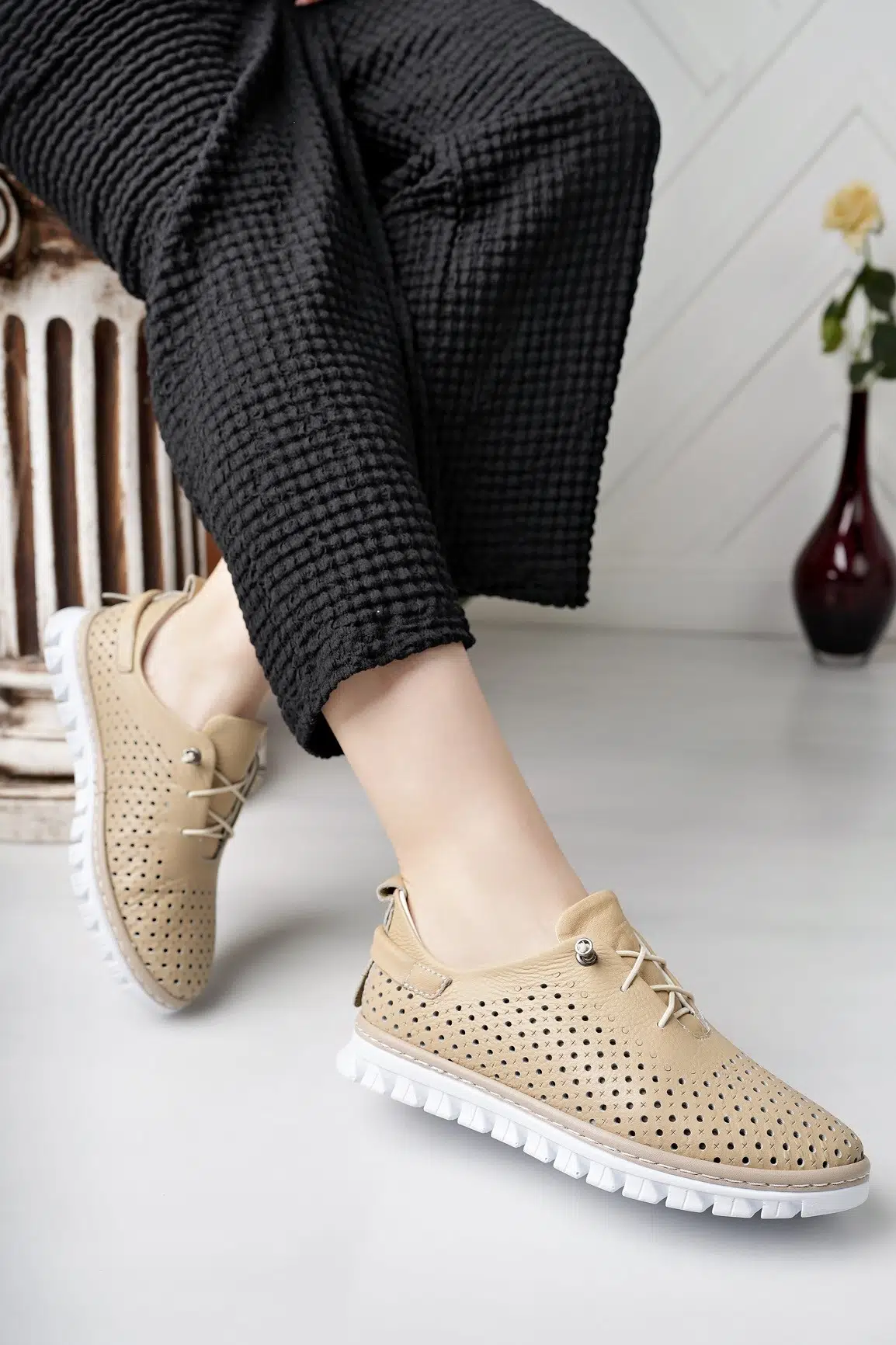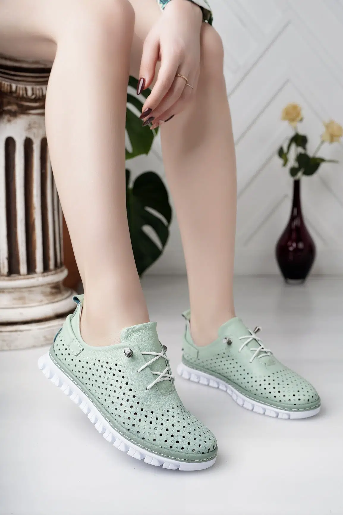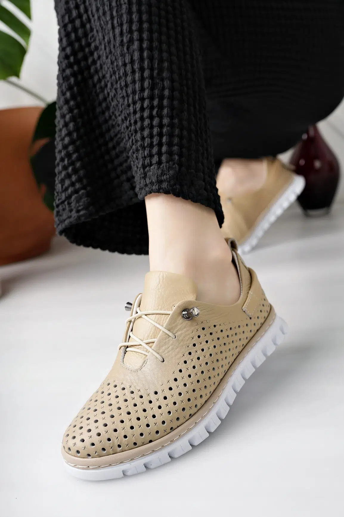 EtiketlerHakiki Deri Kadın Günlük Hafif Rahat Ortopedik Yazlık Ayakkabı DD9775