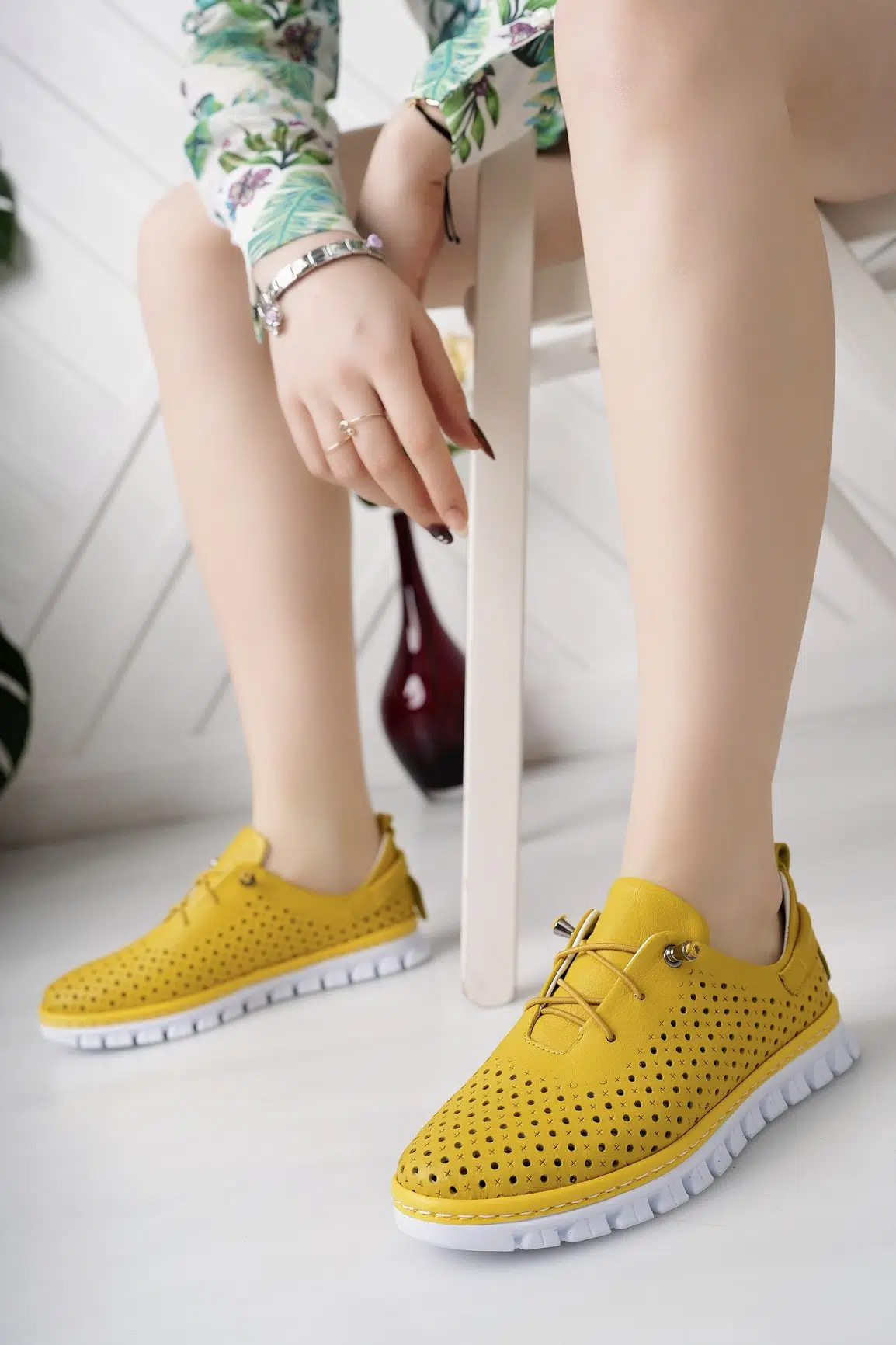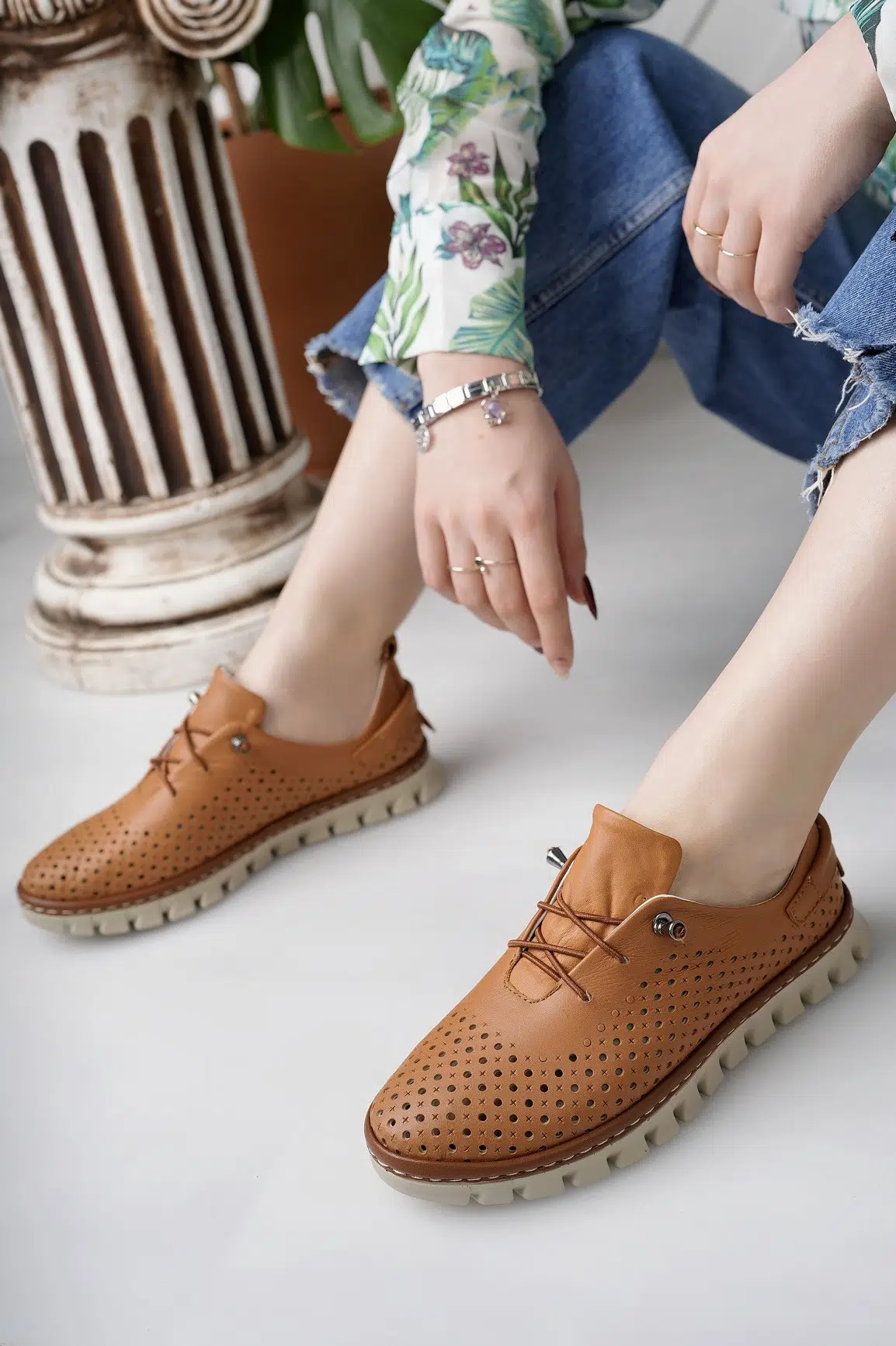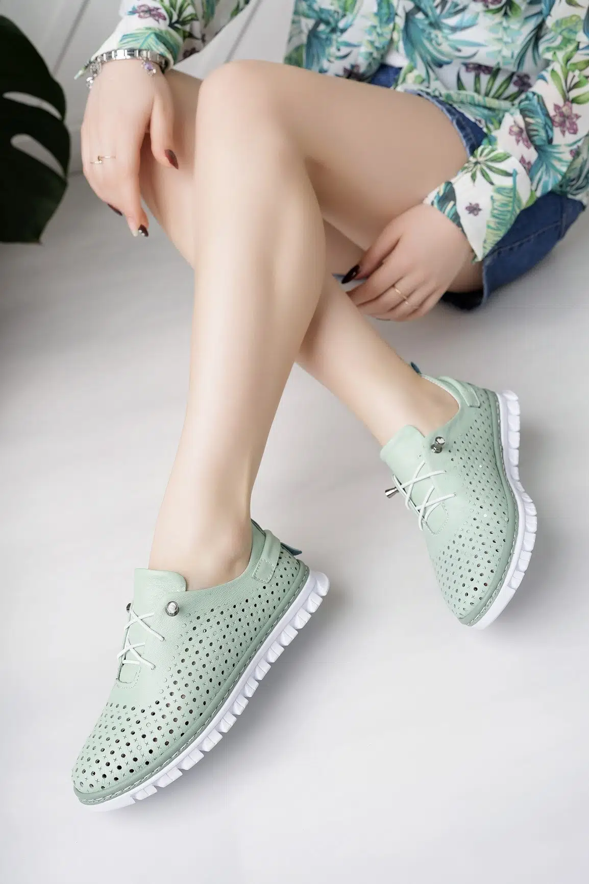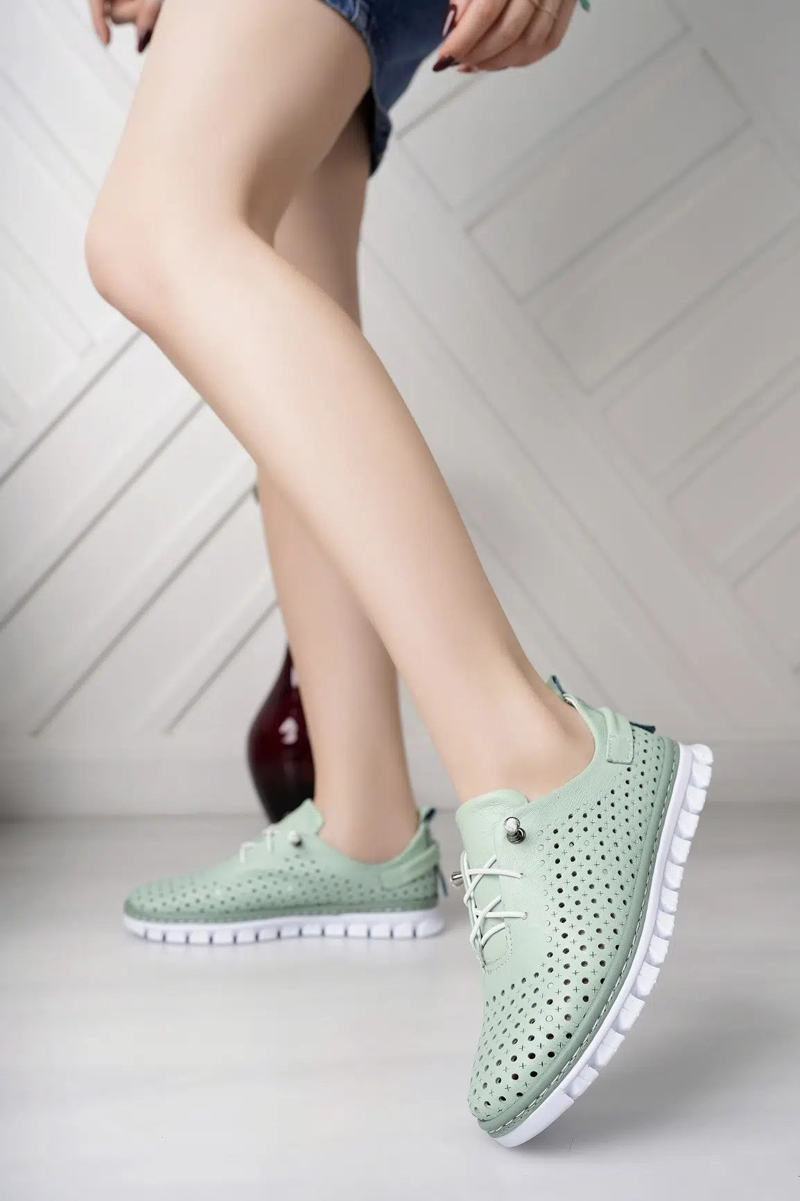 EtiketlerHakiki Deri Kadın Günlük Hafif Rahat Ortopedik Yazlık Ayakkabı DD9775