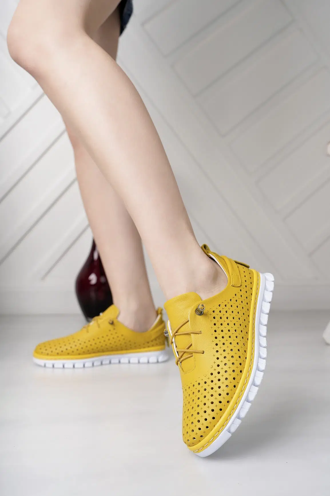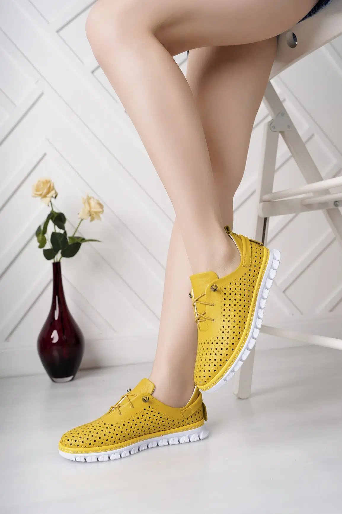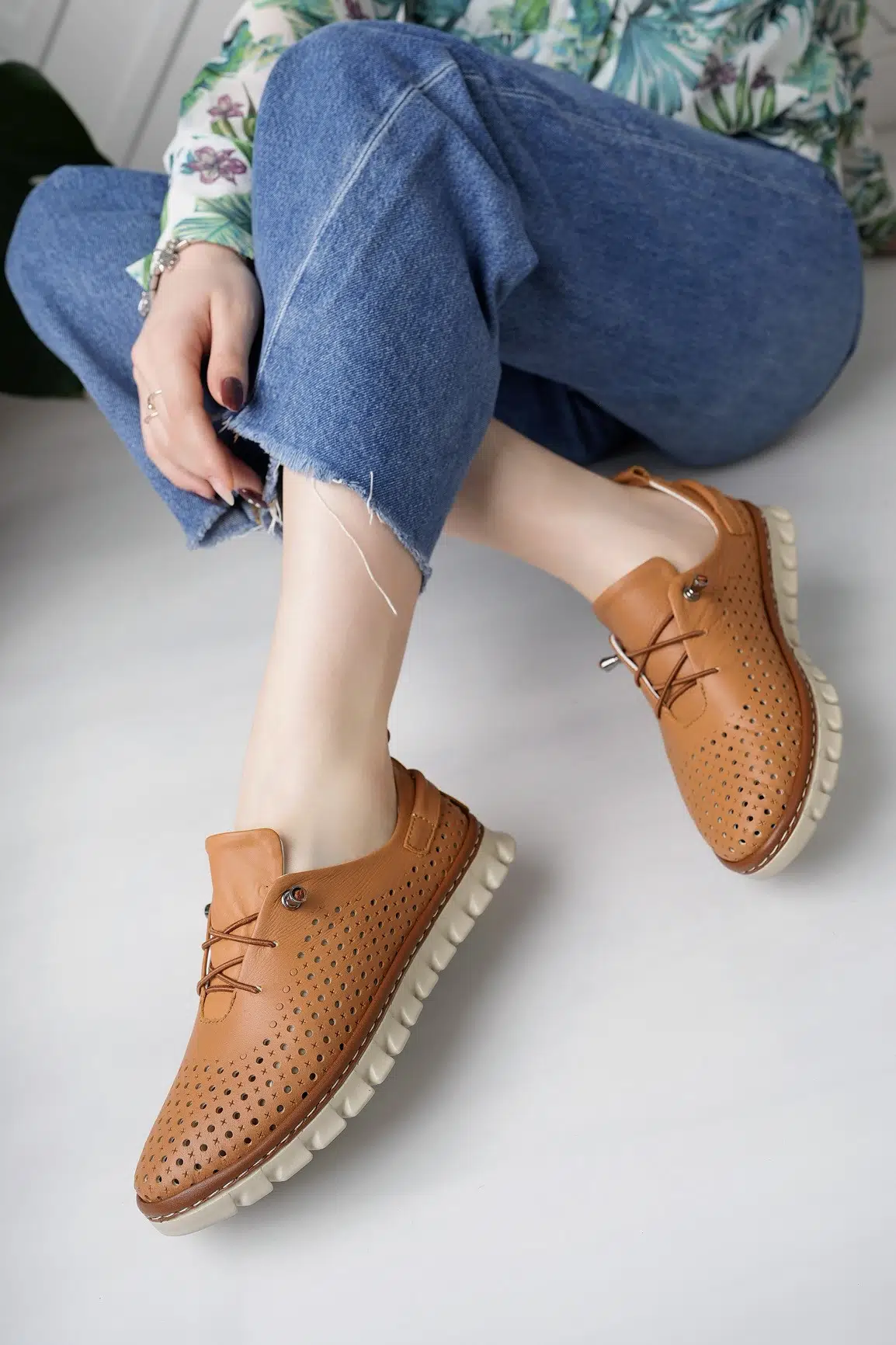 Hakiki Deri Kadın Günlük Hafif Rahat Ortopedik Yazlık Ayakkabı DD9775