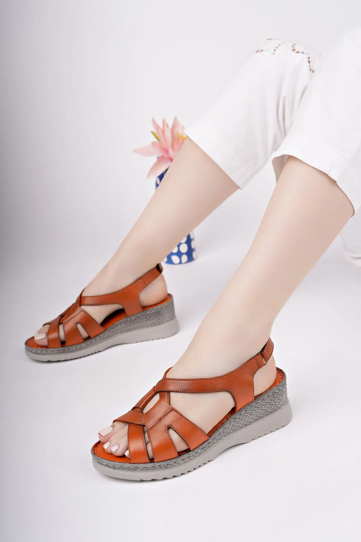 EtiketlerHakiki Deri Kadın Günlük Hafif Rahat Sandalet DD1952