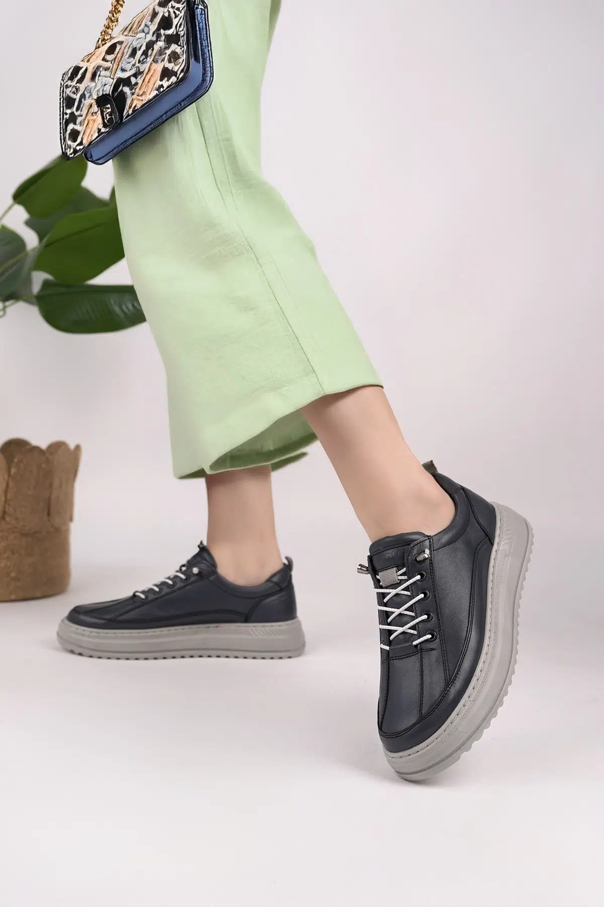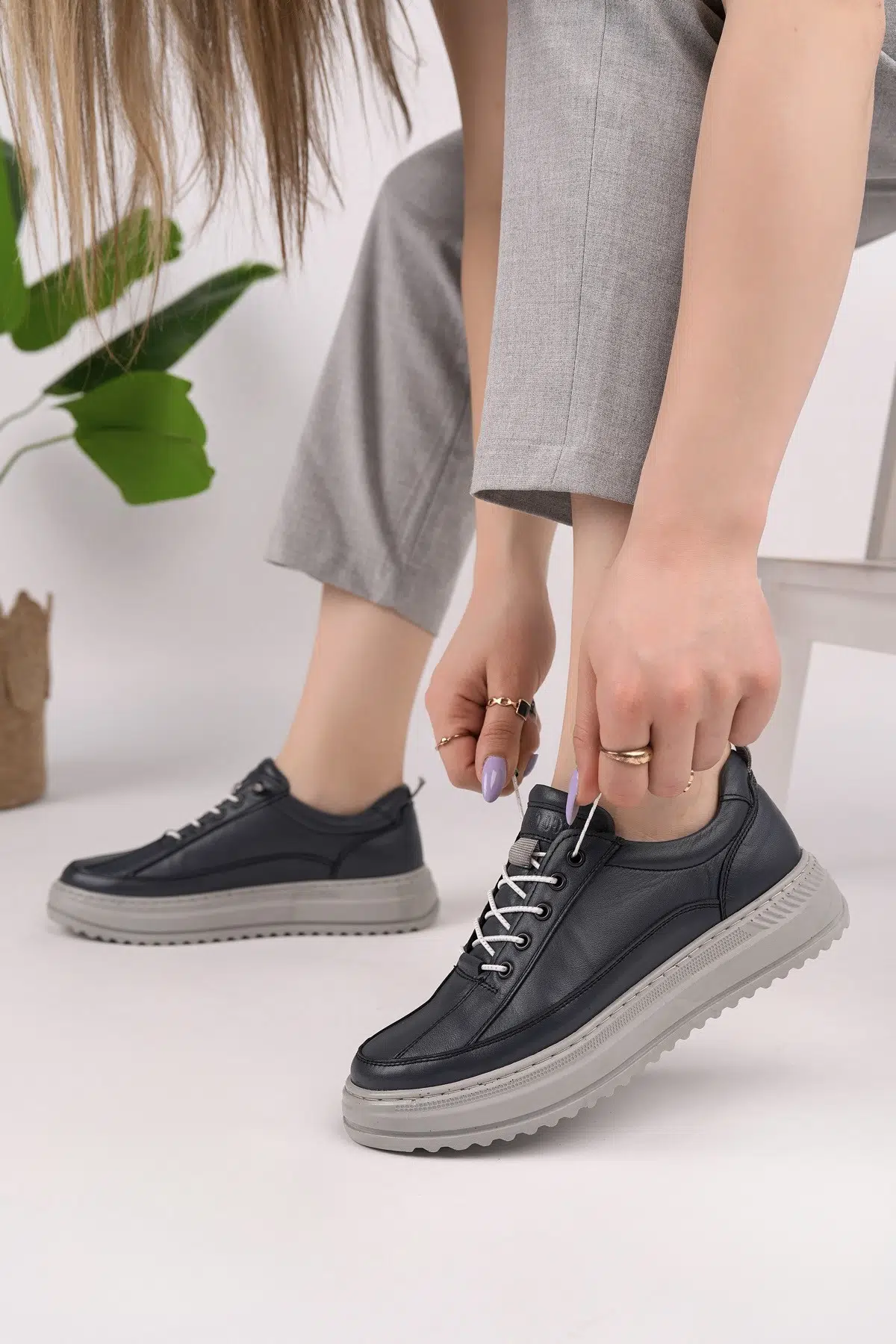 EtiketlerHakiki Deri Kadın Günlük Hafif Rahat Sneaker Ayakkabı DD1997