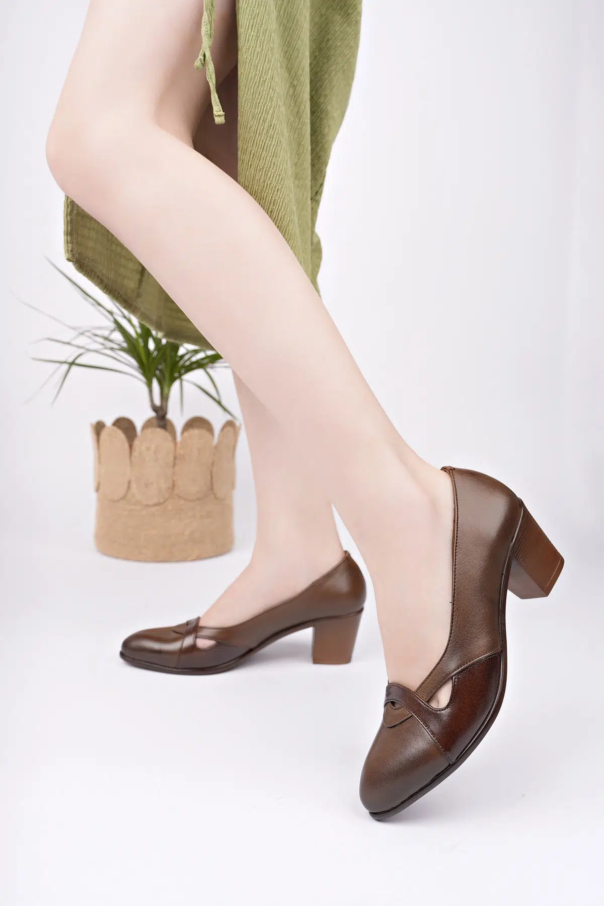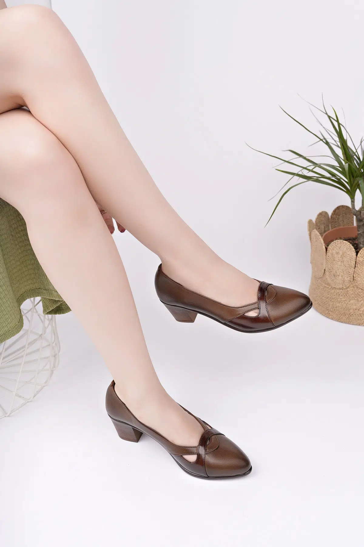 Hakiki Deri Kadın Günlük Klasik Topuklu Ayakkabı DD0184