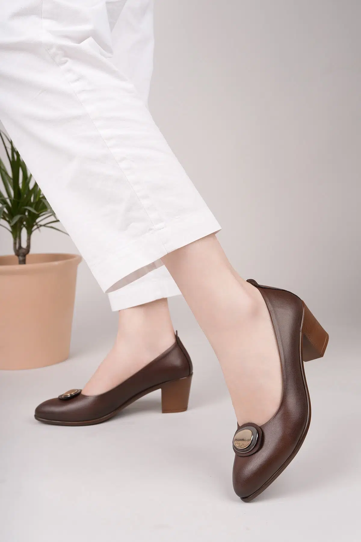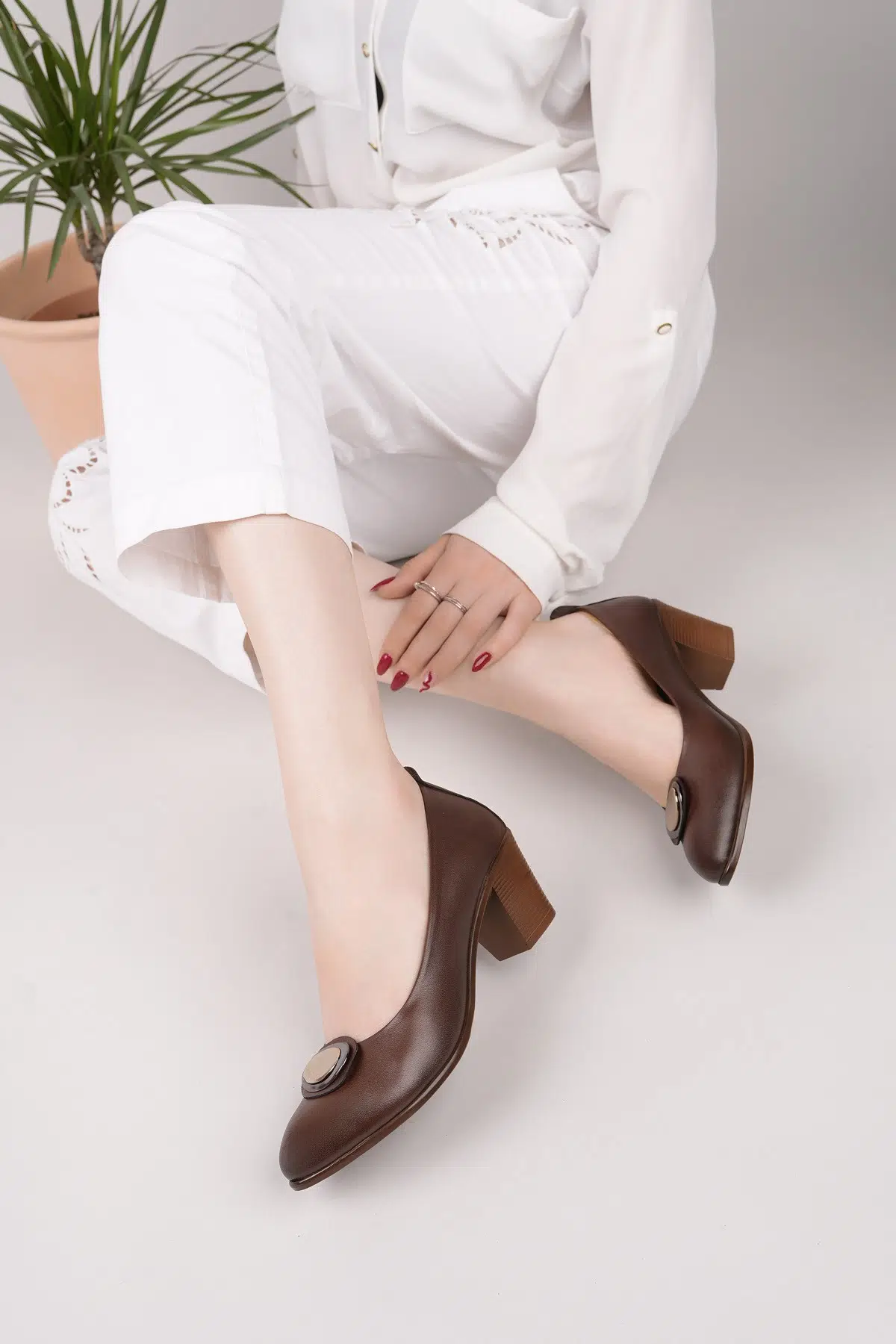 Hakiki Deri Kadın Günlük Topuklu Sandalet DD9719