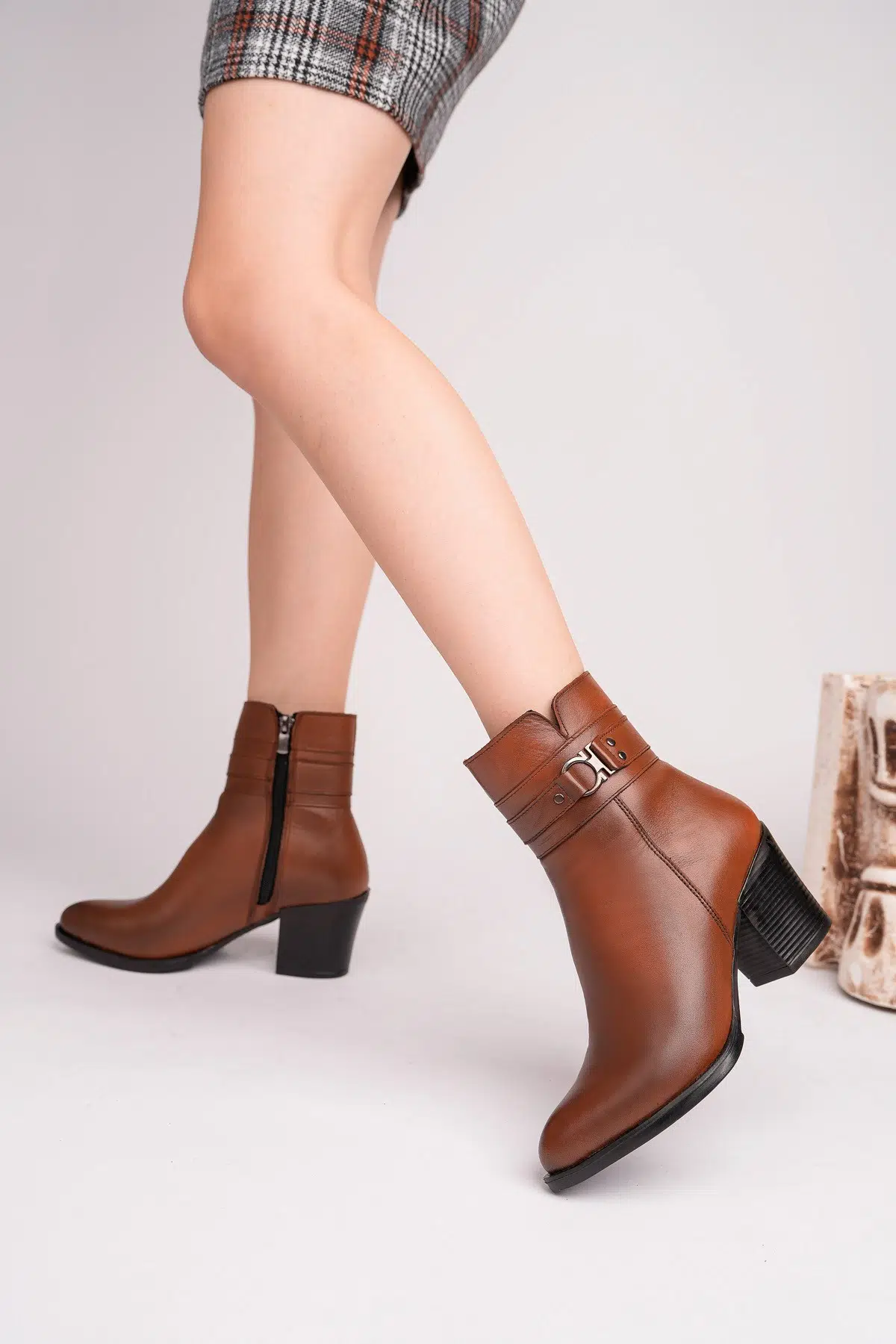 Hakiki Deri Kadın Günlük Klasik Topuklu Bot DC2510