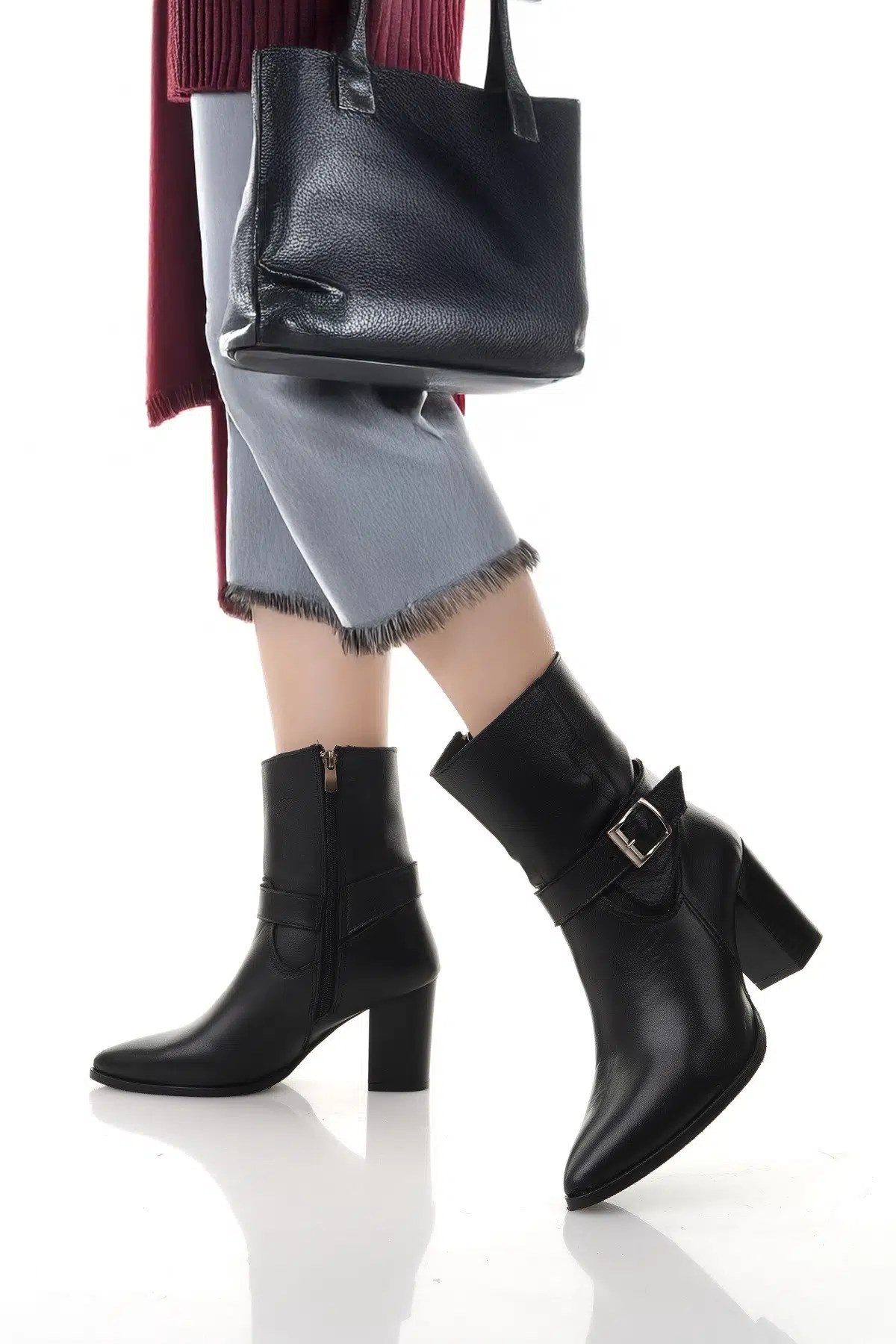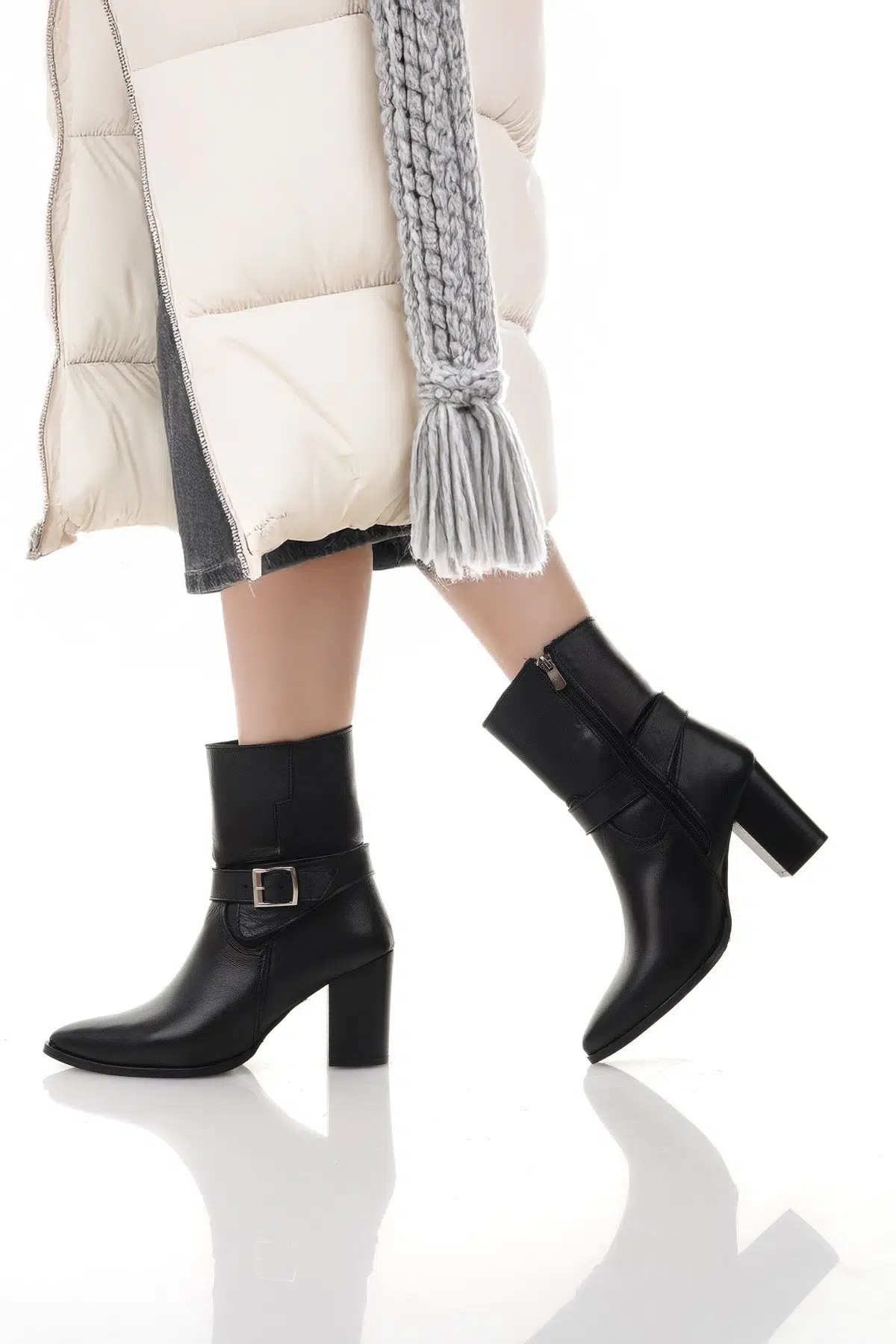 Hakiki Deri Kadın Günlük Klasik Topuklu Kısa Çizme