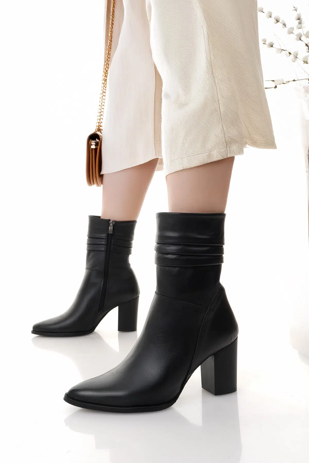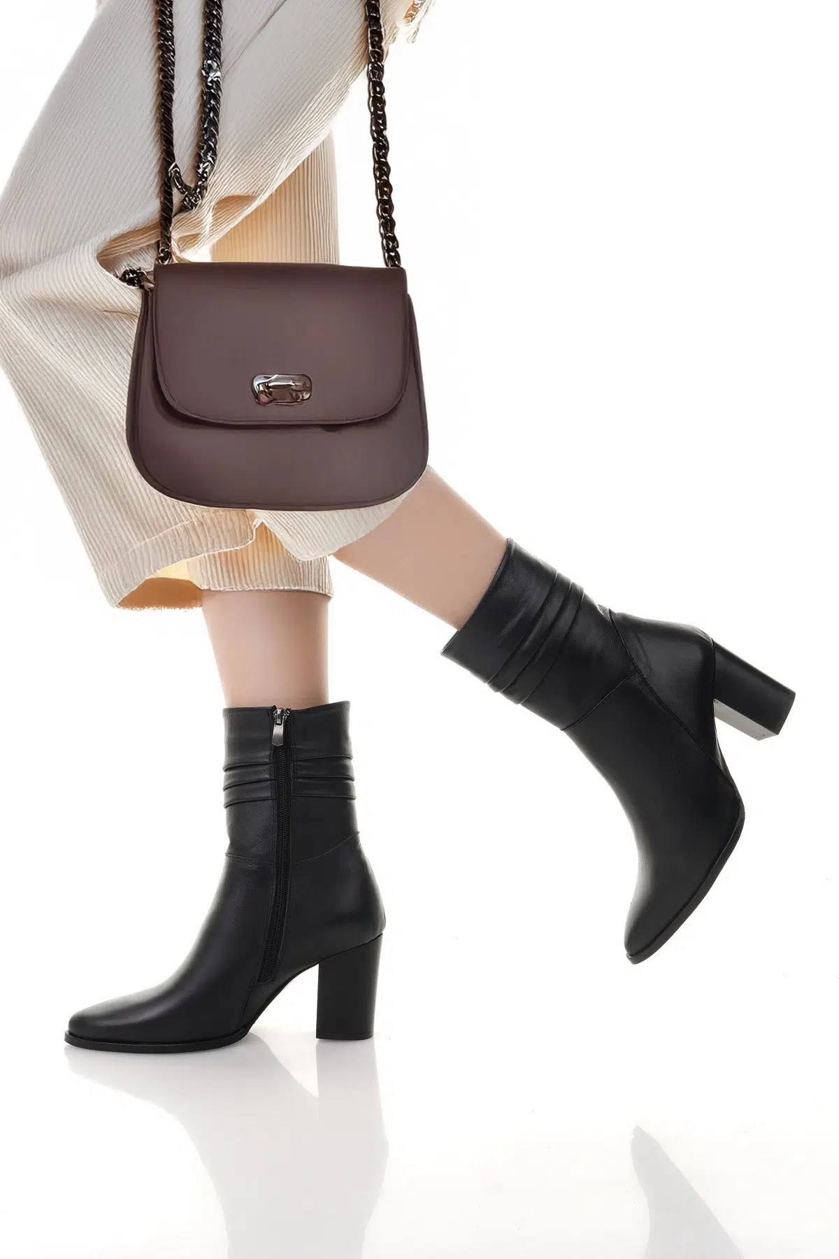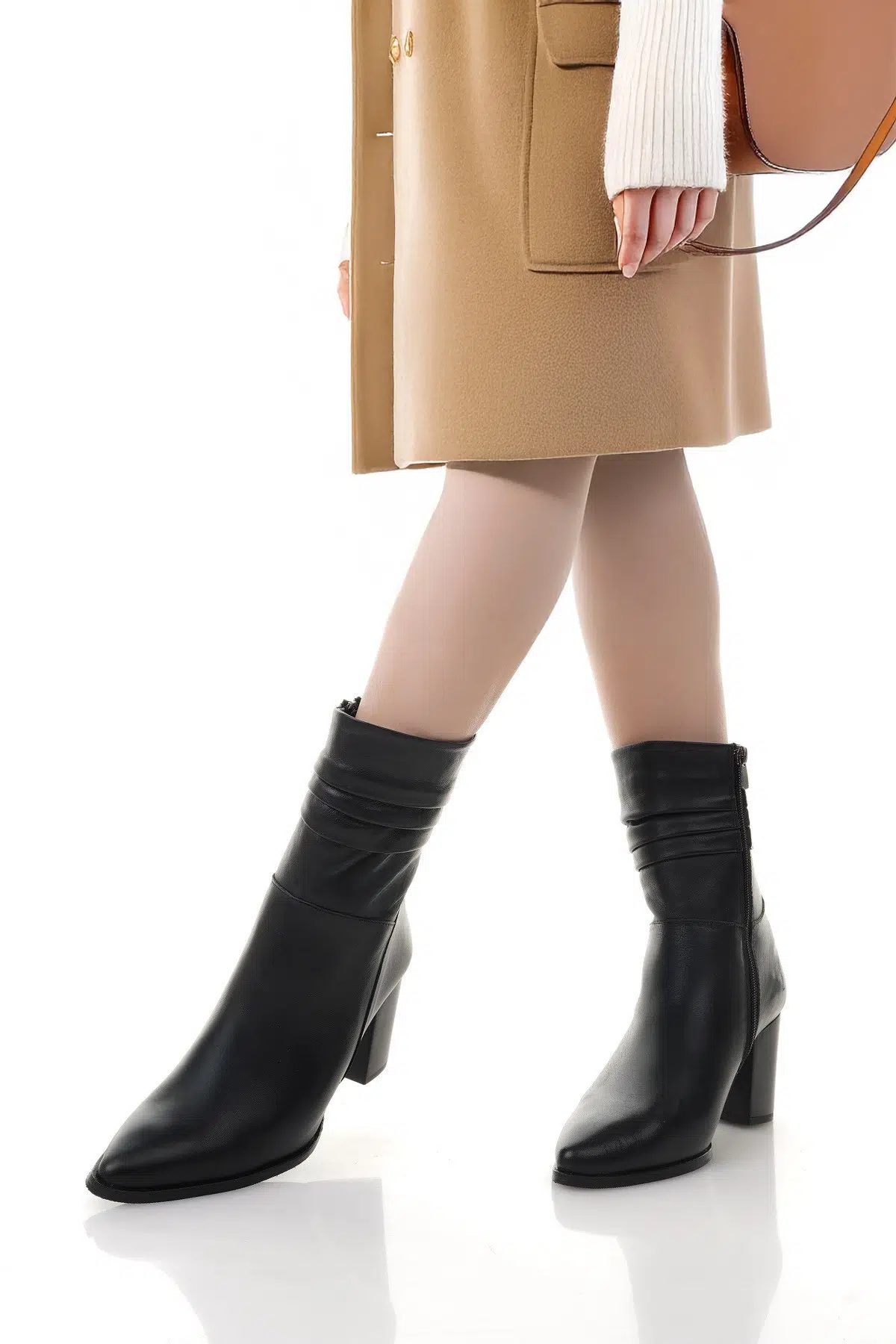 Hakiki Deri Kadın Günlük Klasik Topuklu Kısa Çizme DC9916