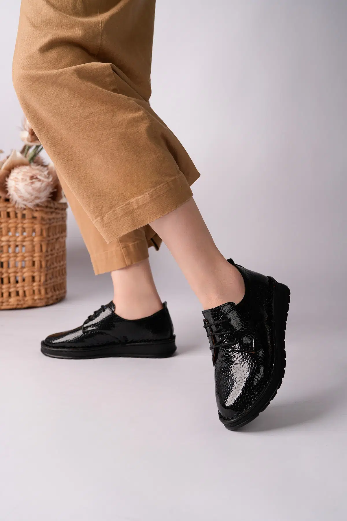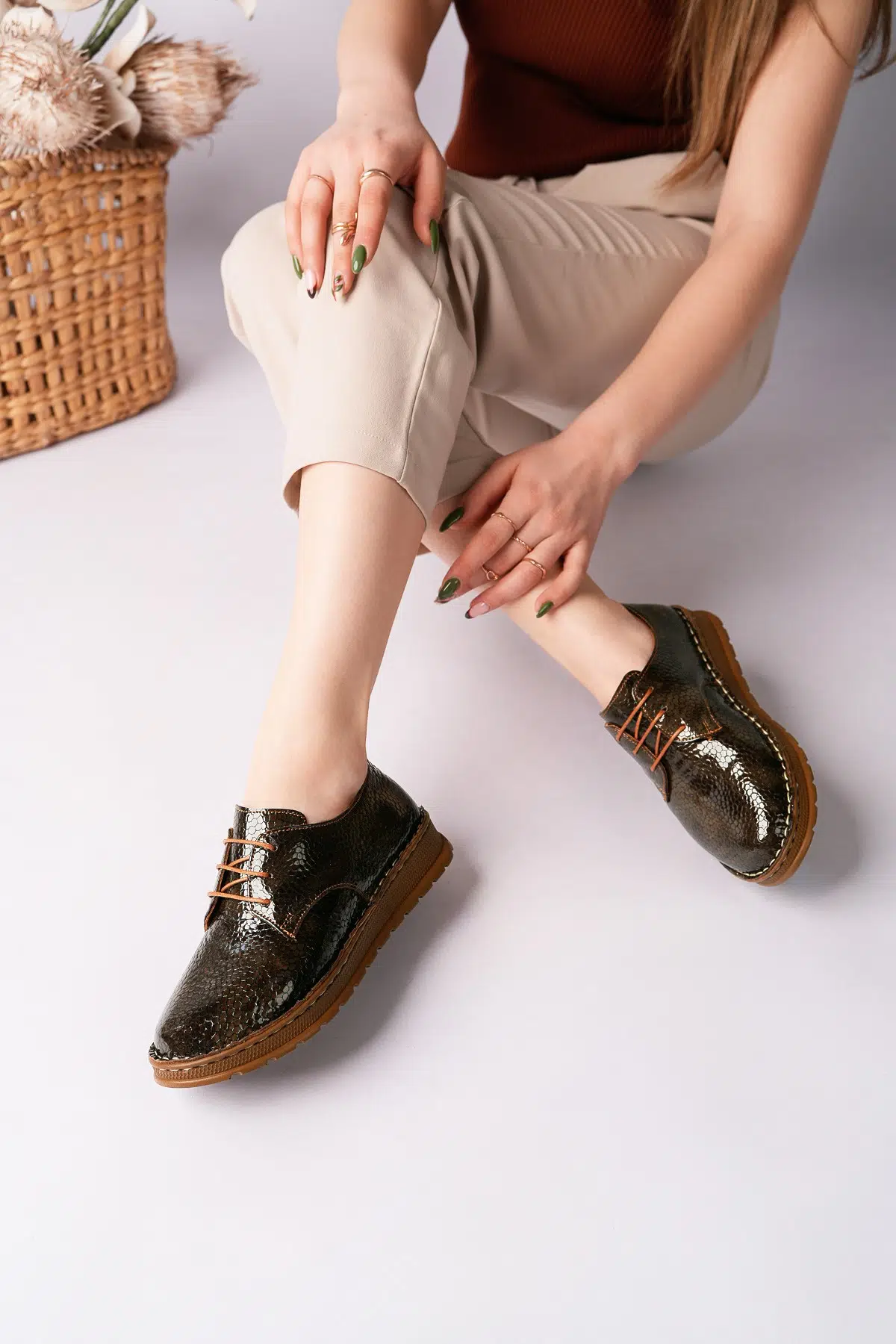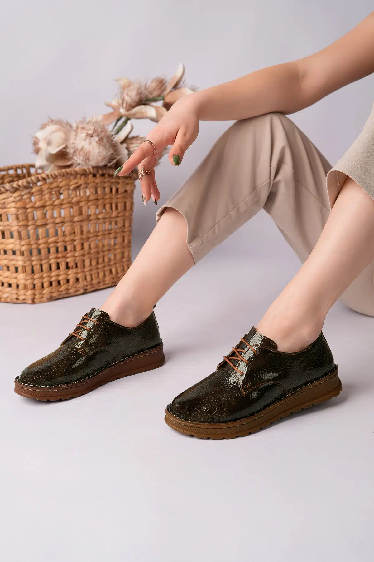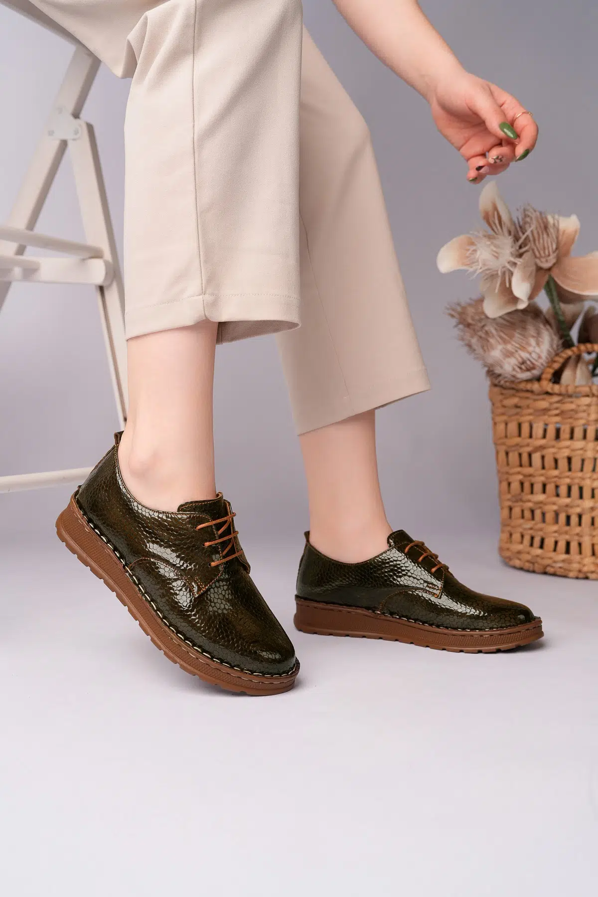 EtiketlerHakiki Deri Kadın Günlük Rahat Hafif Taban Rugan Casual Ayakkabı