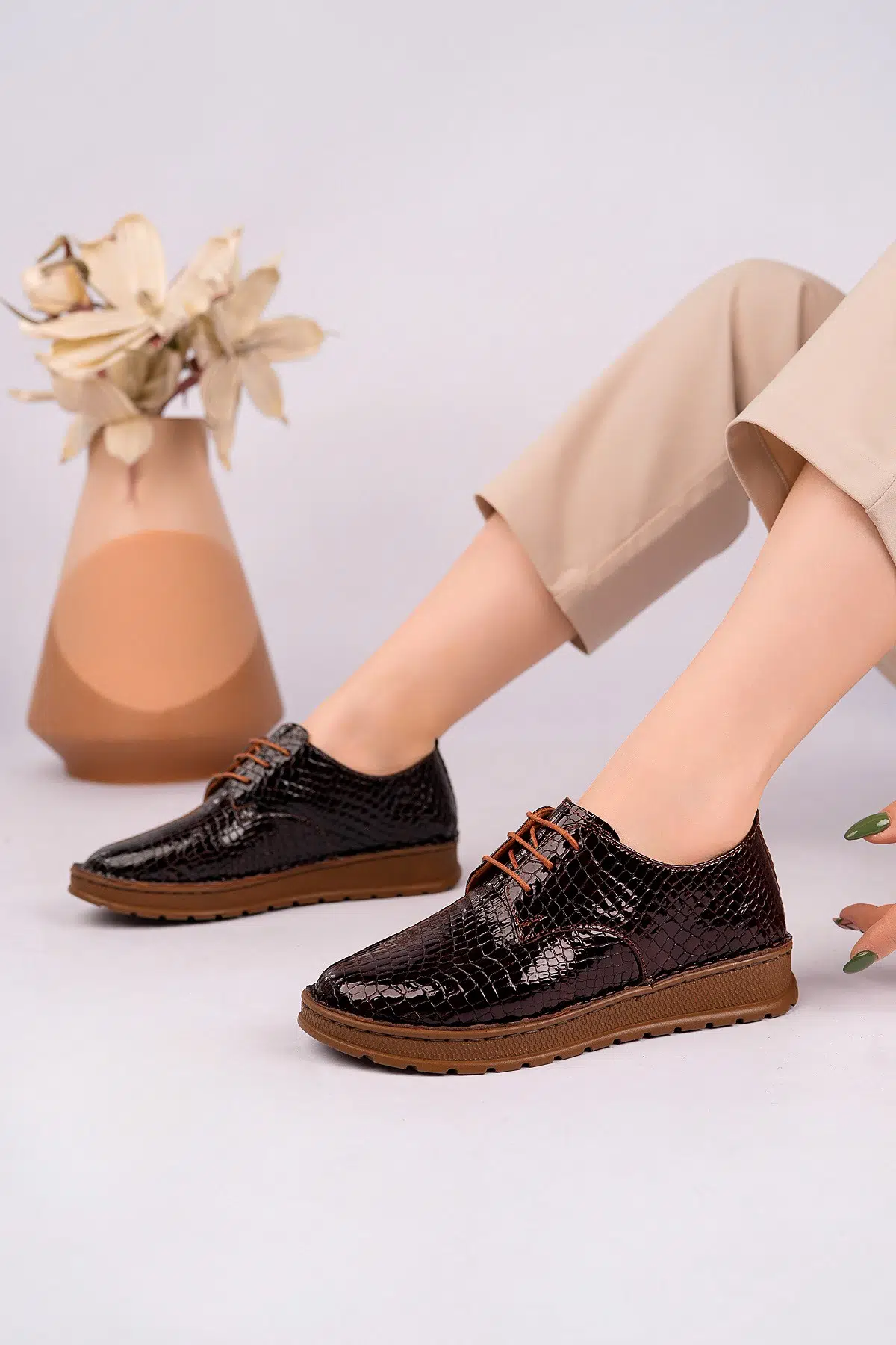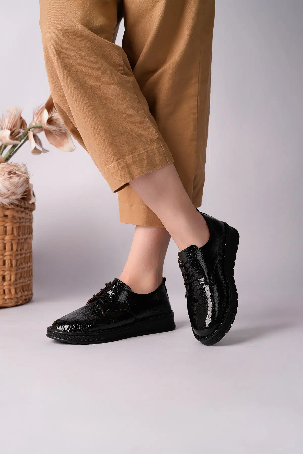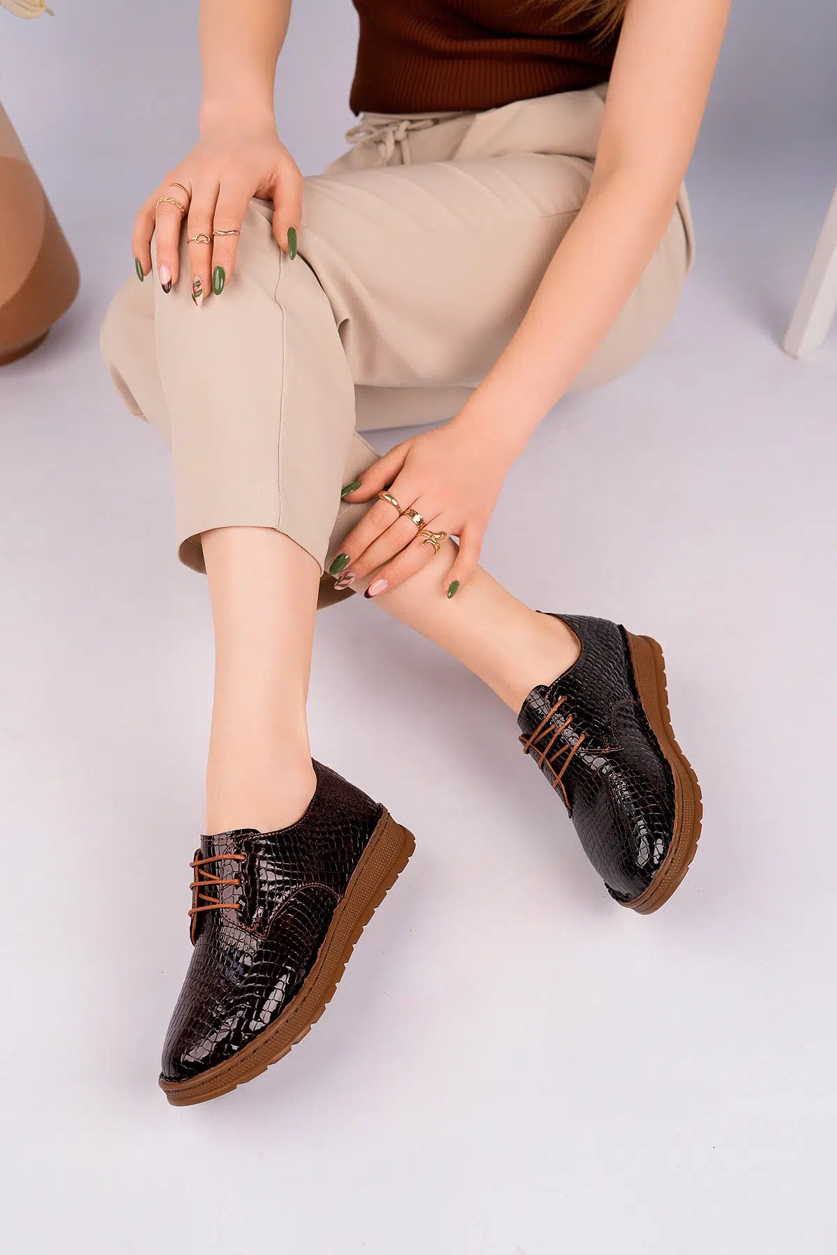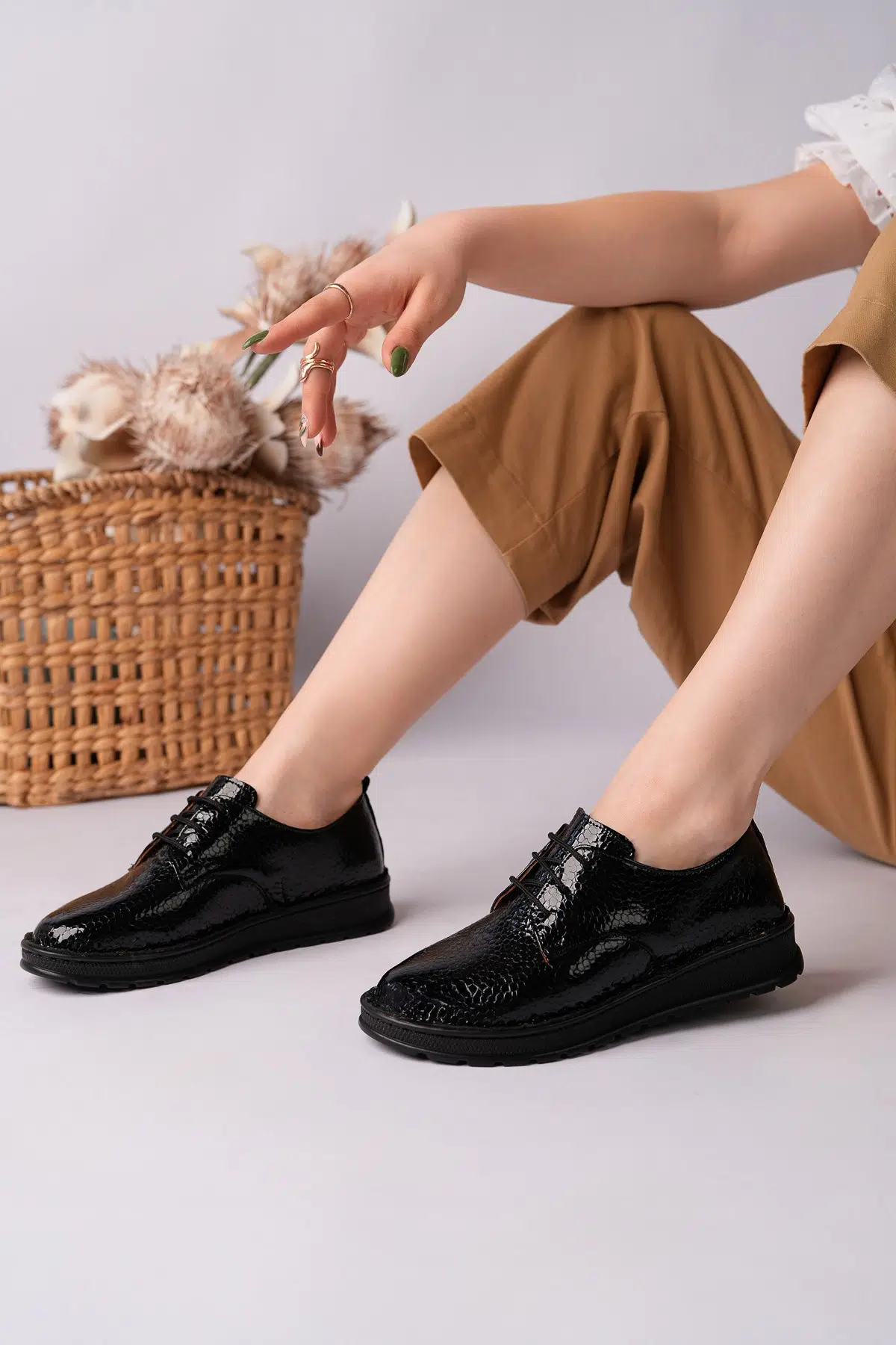 EtiketlerHakiki Deri Kadın Günlük Rahat Hafif Taban Rugan Casual Ayakkabı