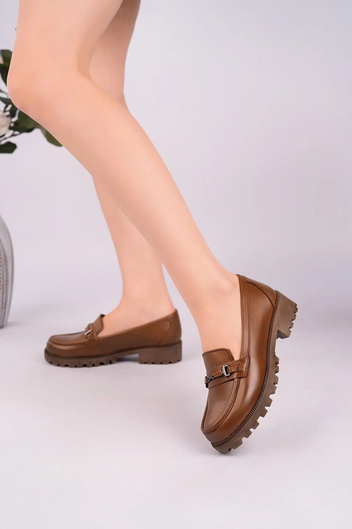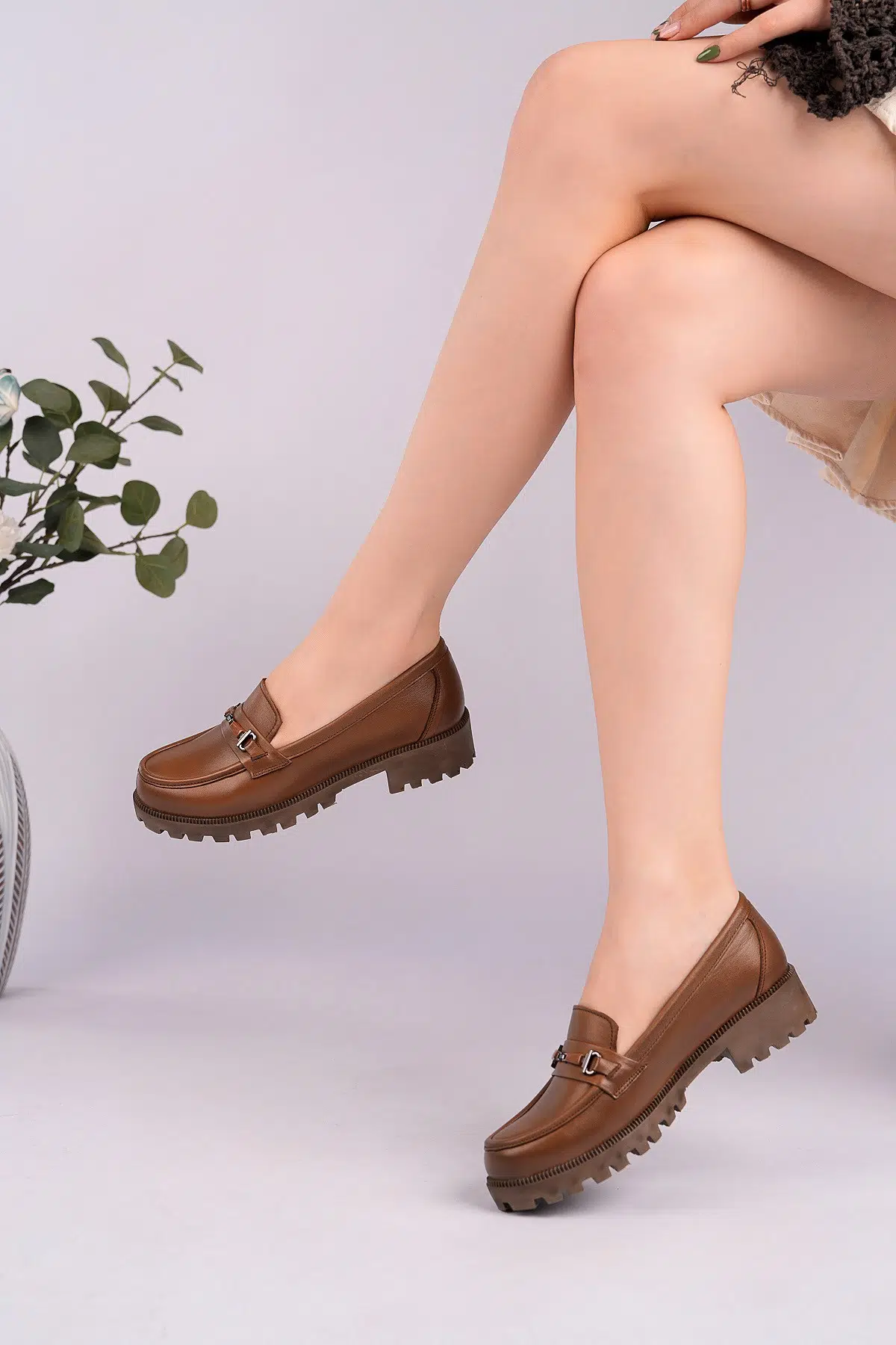 EtiketlerHakiki Deri Kadın Günlük Rahat Tokalı Loafer Ayakkabı DC3400