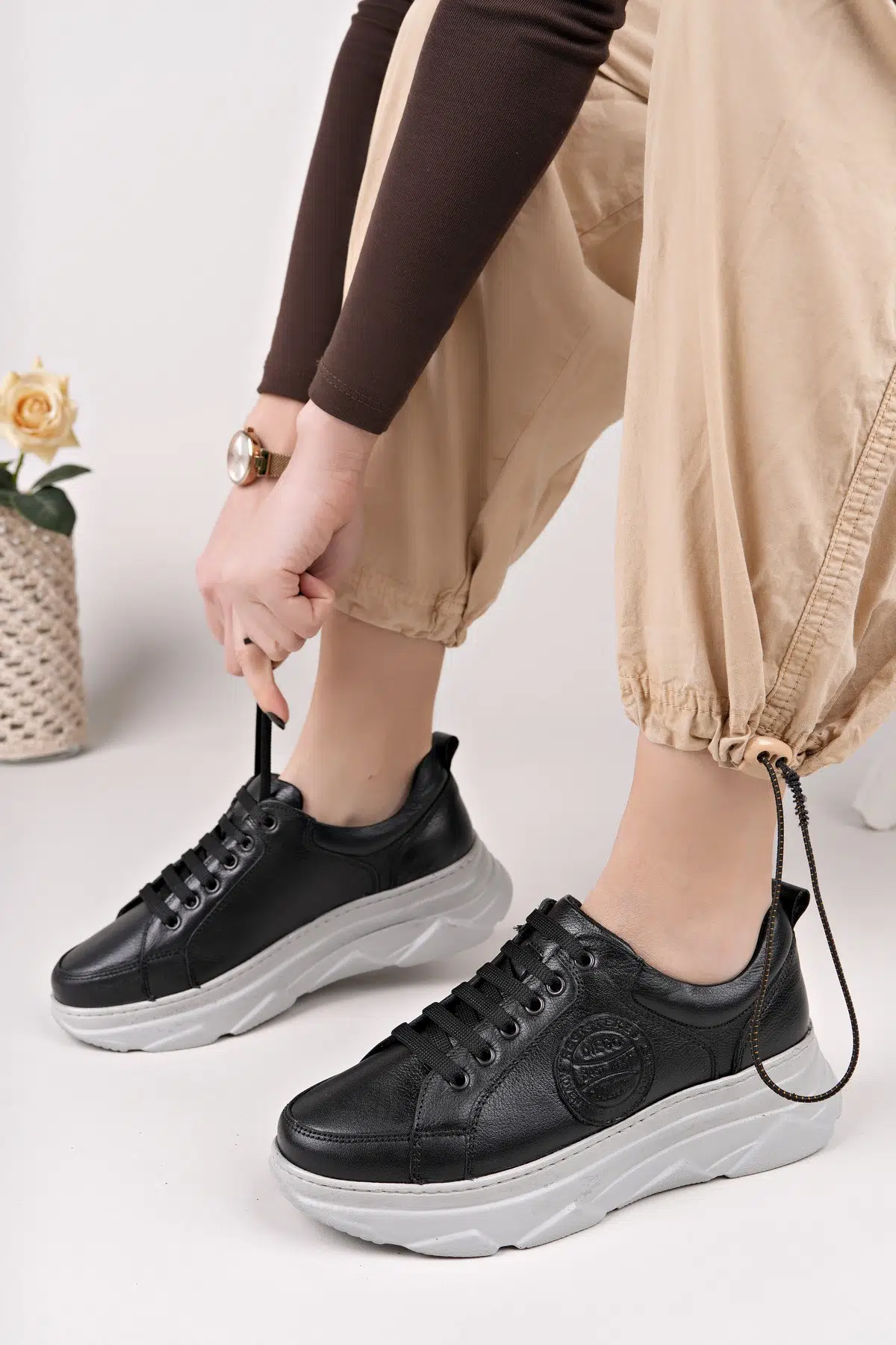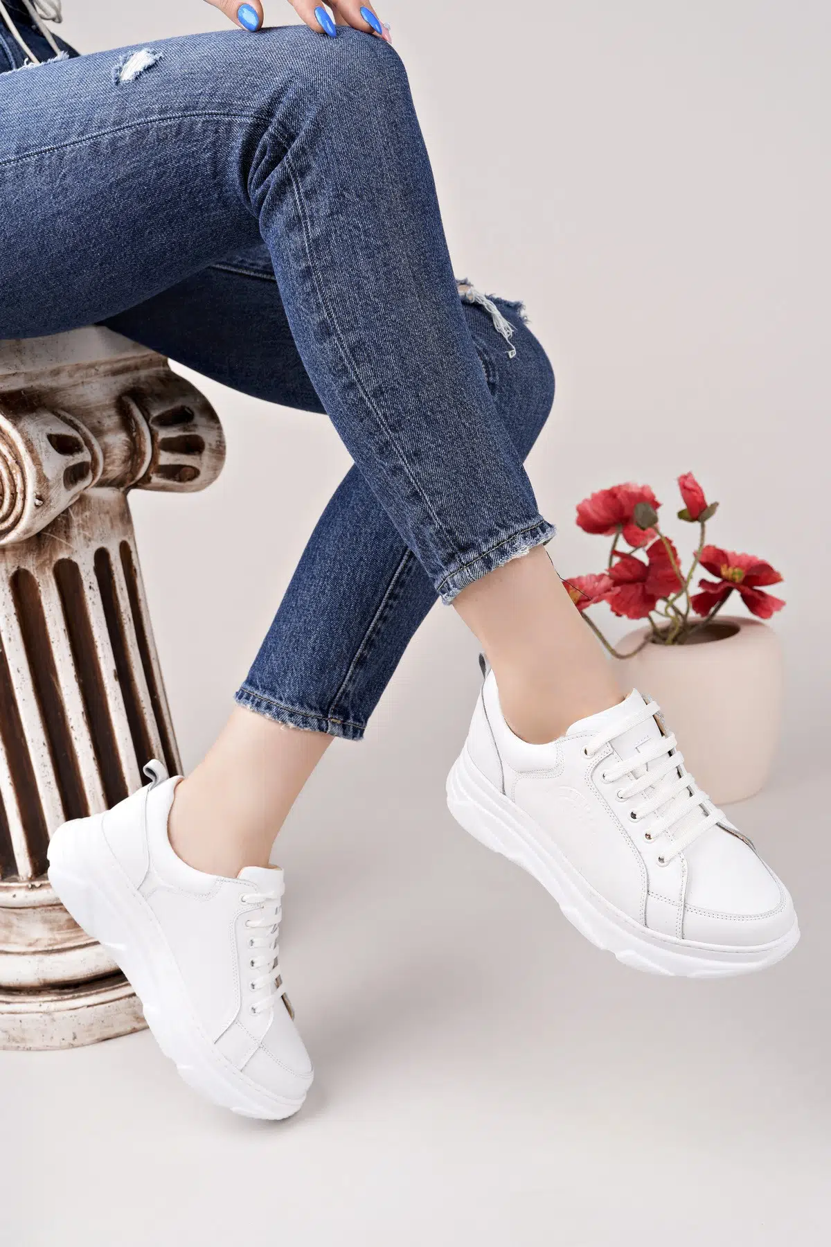Hakiki Deri Kadın Günlük Sneaker Ayakkabı DD1994