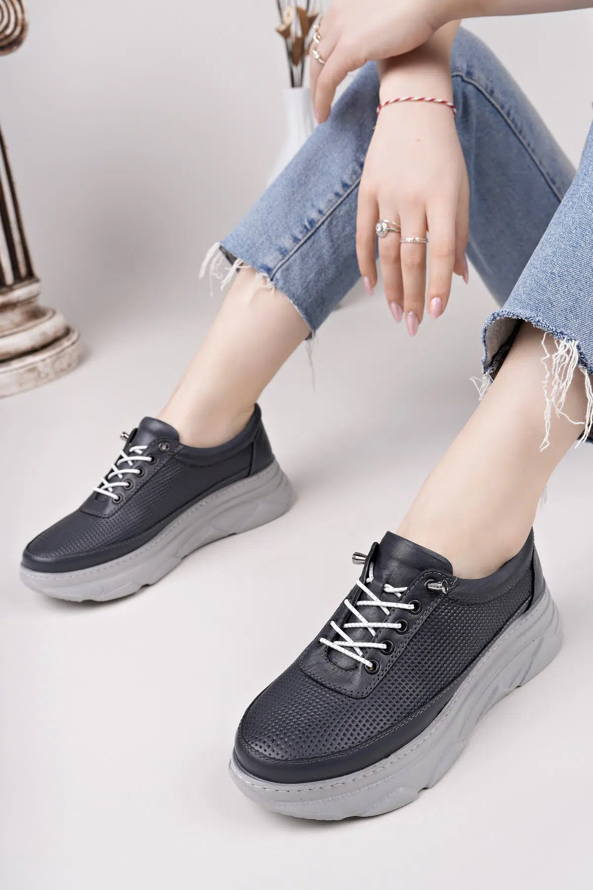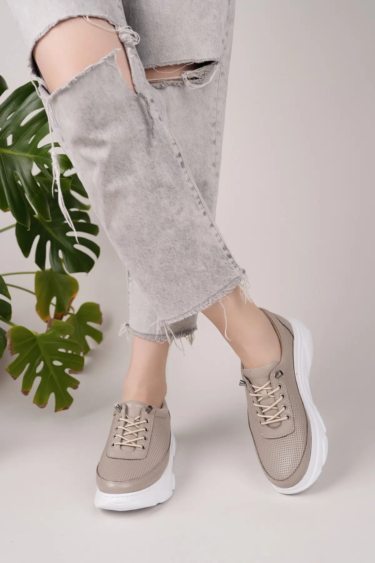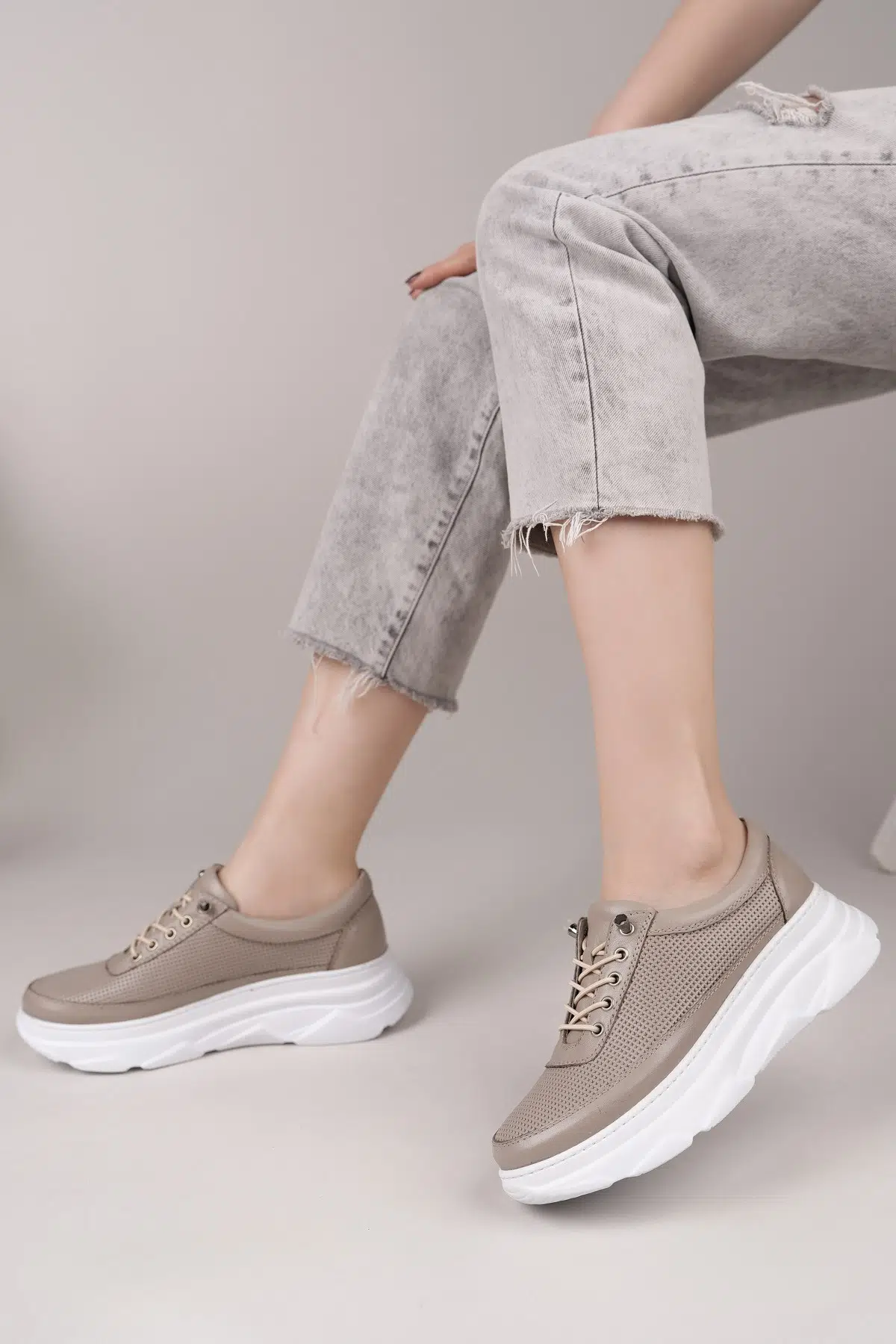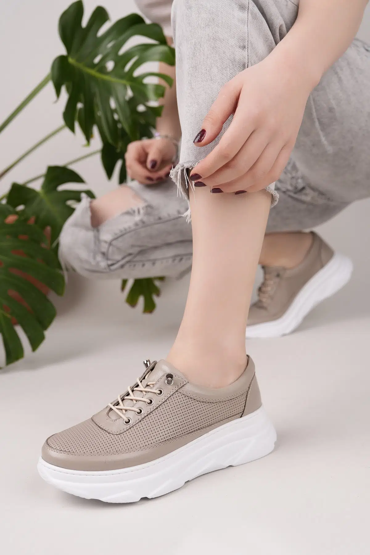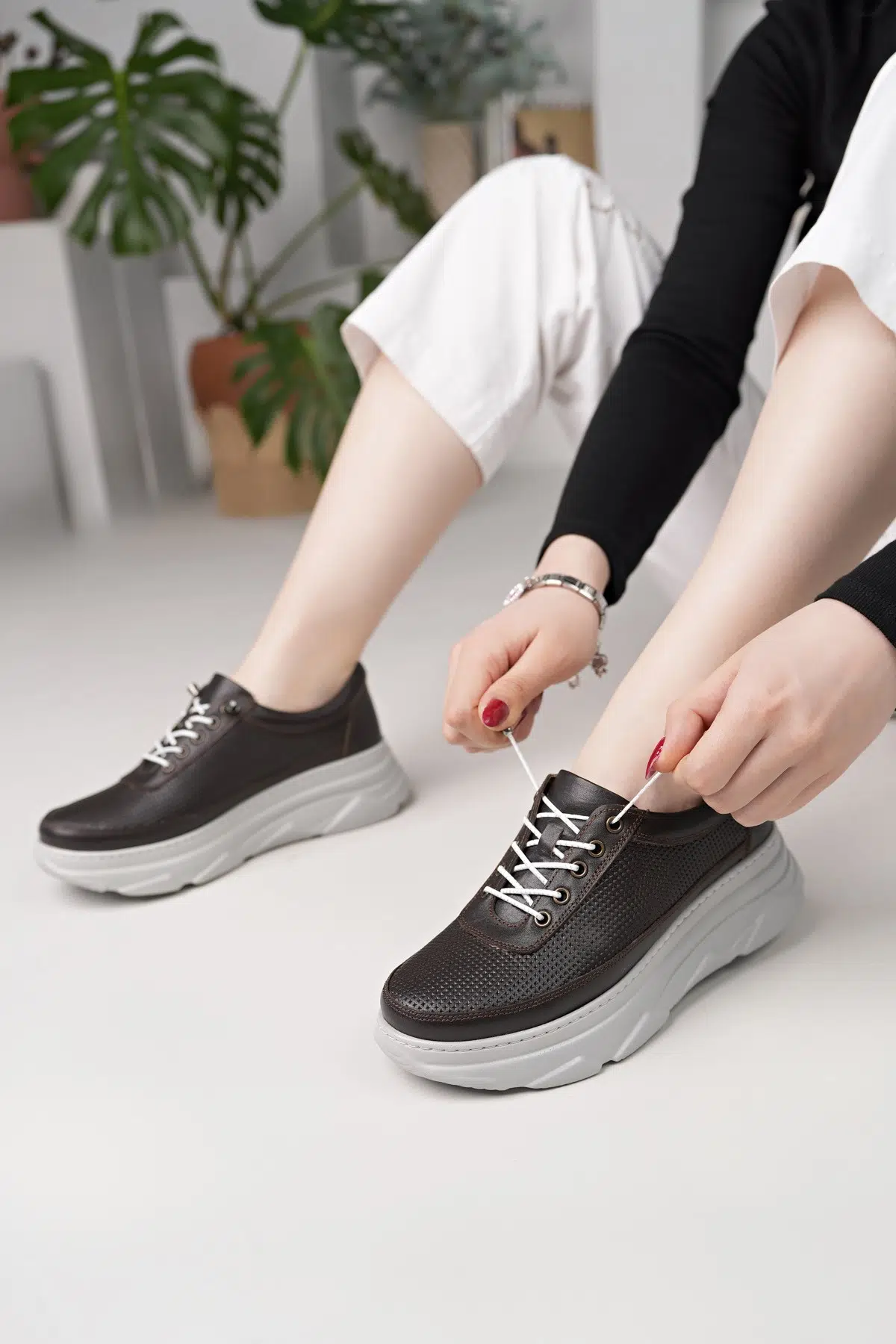 Hakiki Deri Kadın Günlük Sneaker Ayakkabı DD2102