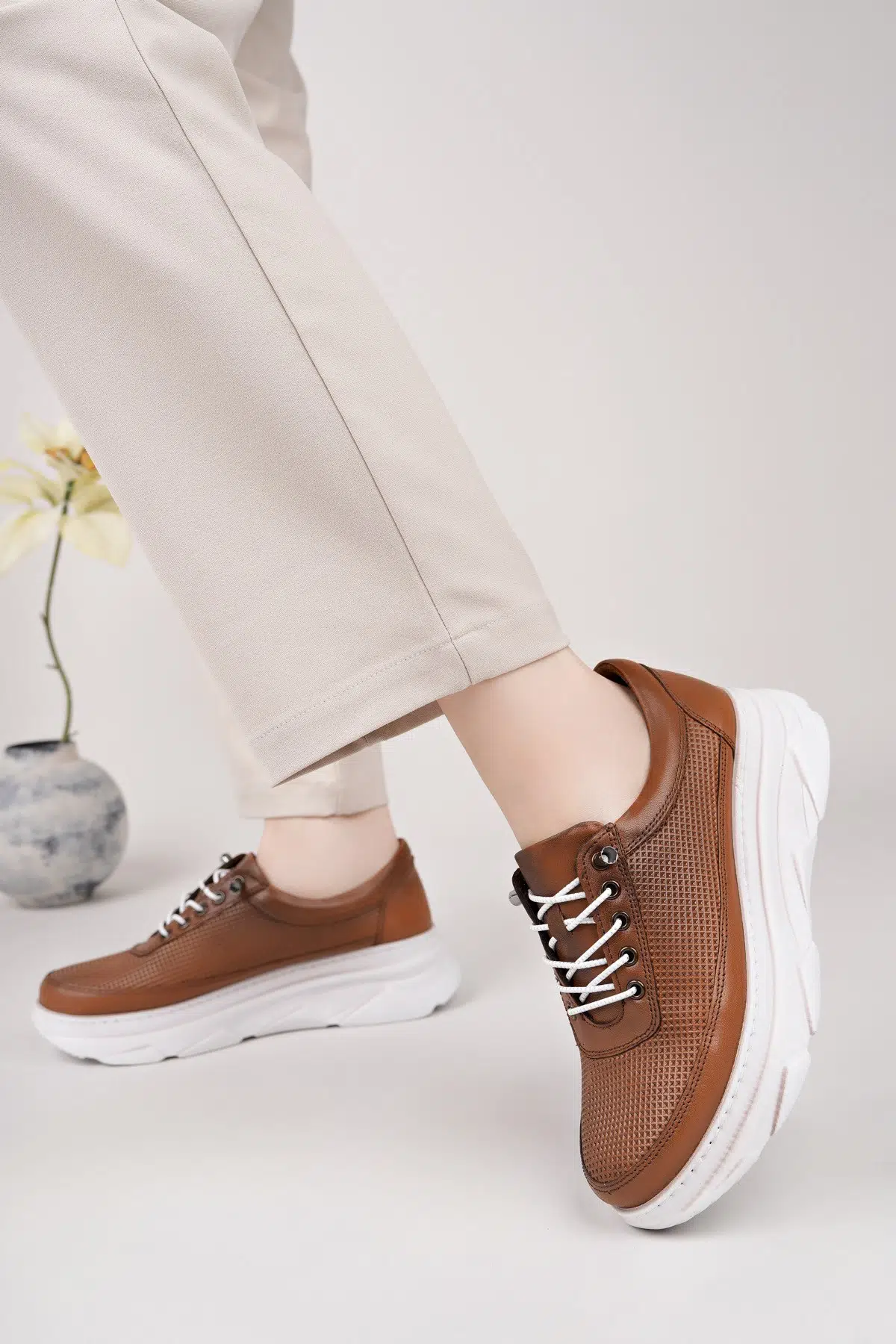 EtiketlerHakiki Deri Kadın Günlük Sneaker Ayakkabı DD2102