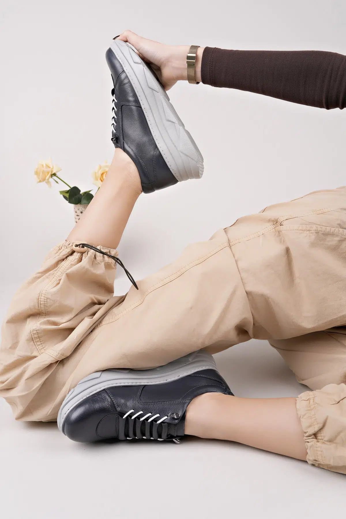 EtiketlerHakiki Deri Kadın Günlük Sneaker Ayakkabı DD2103