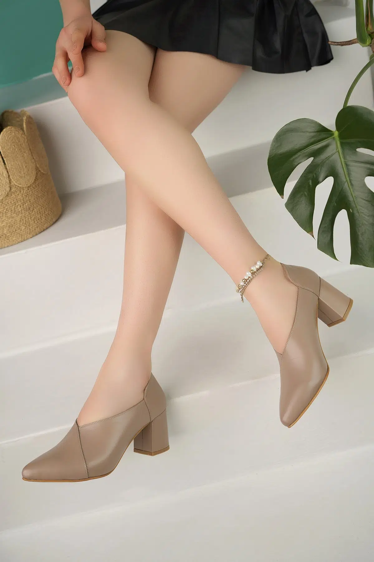 Hakiki Deri Kadın Günlük Topuklu Ayakkabı DD9722