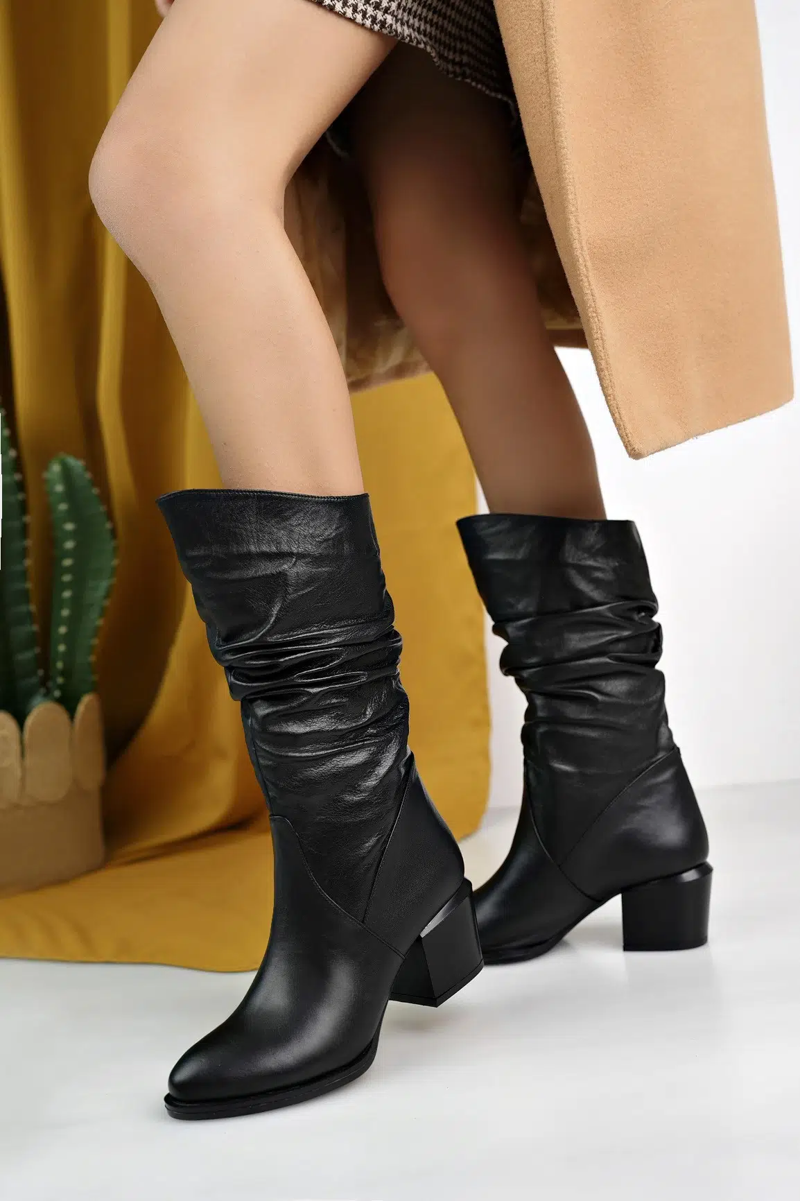 EtiketlerHakiki Deri Kadın Körüklü Çizme DC9913