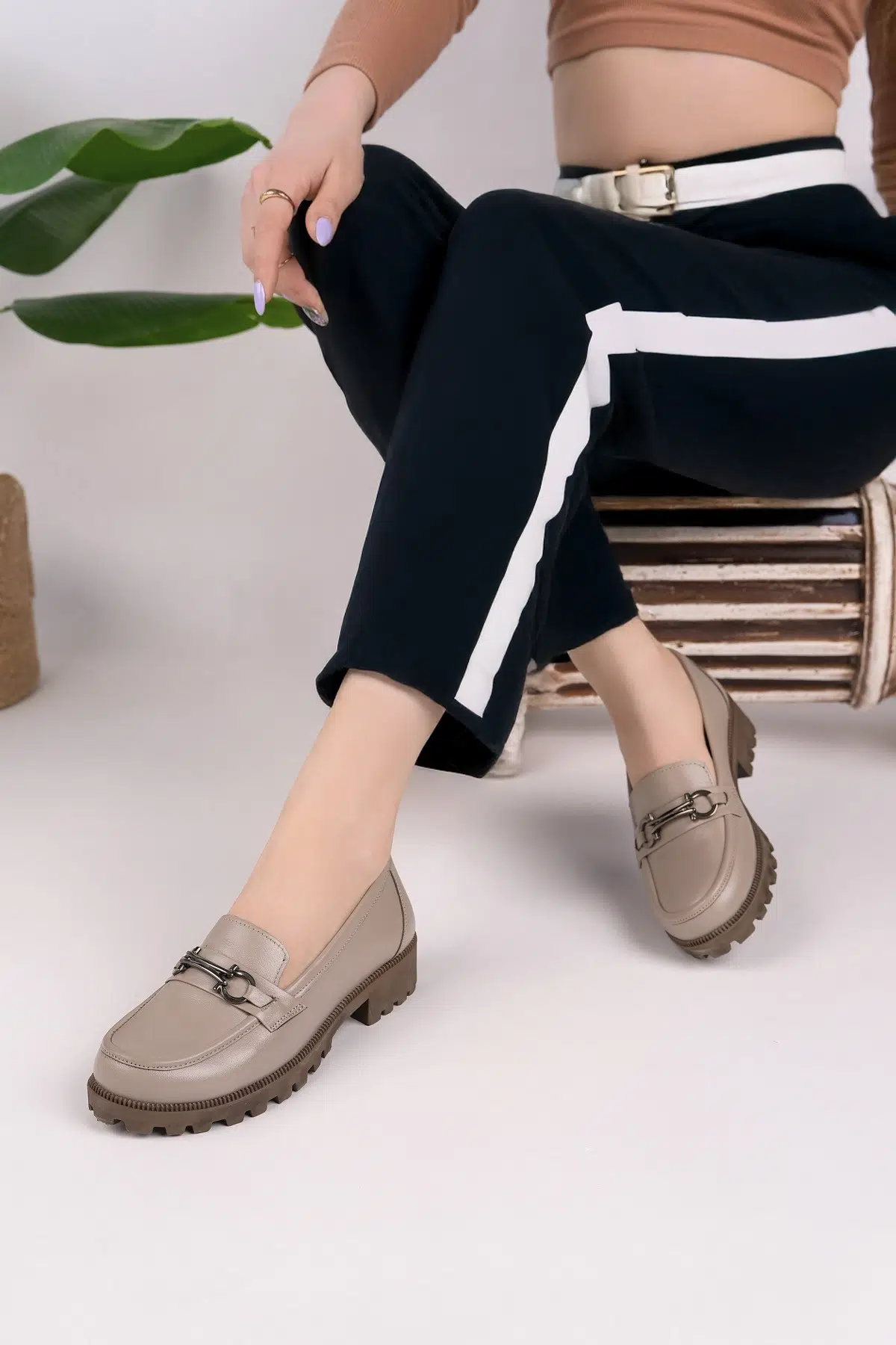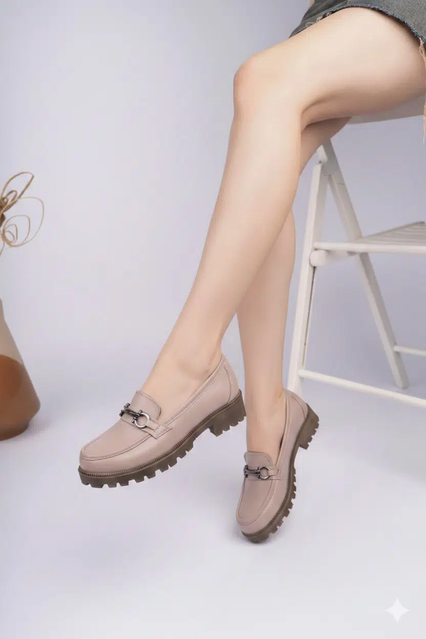 EtiketlerHakiki Deri Kadın Tokalı Günlük Loafer Ayakkabı DC3500