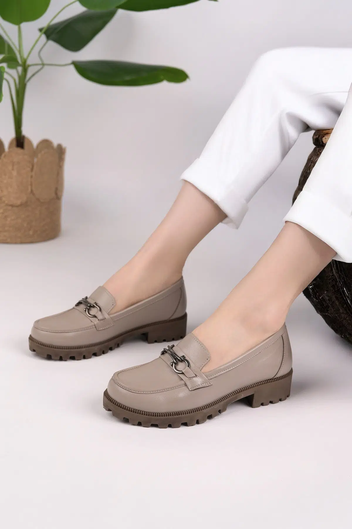 Hakiki Deri Kadın Tokalı Günlük Loafer Ayakkabı DC3500